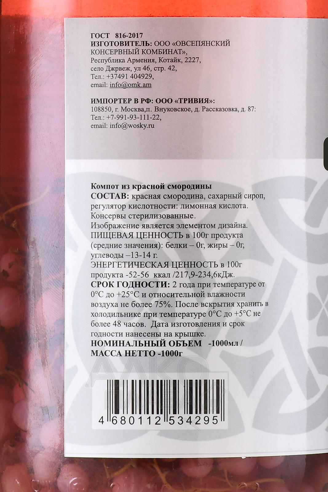 Компот Воски из Красной Смородины 1 л
