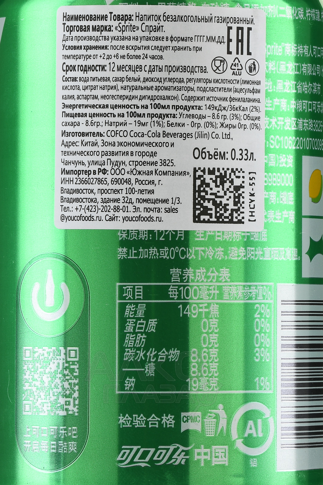 Напиток б/алк. газированный Спрайт 0.33 л ж/б