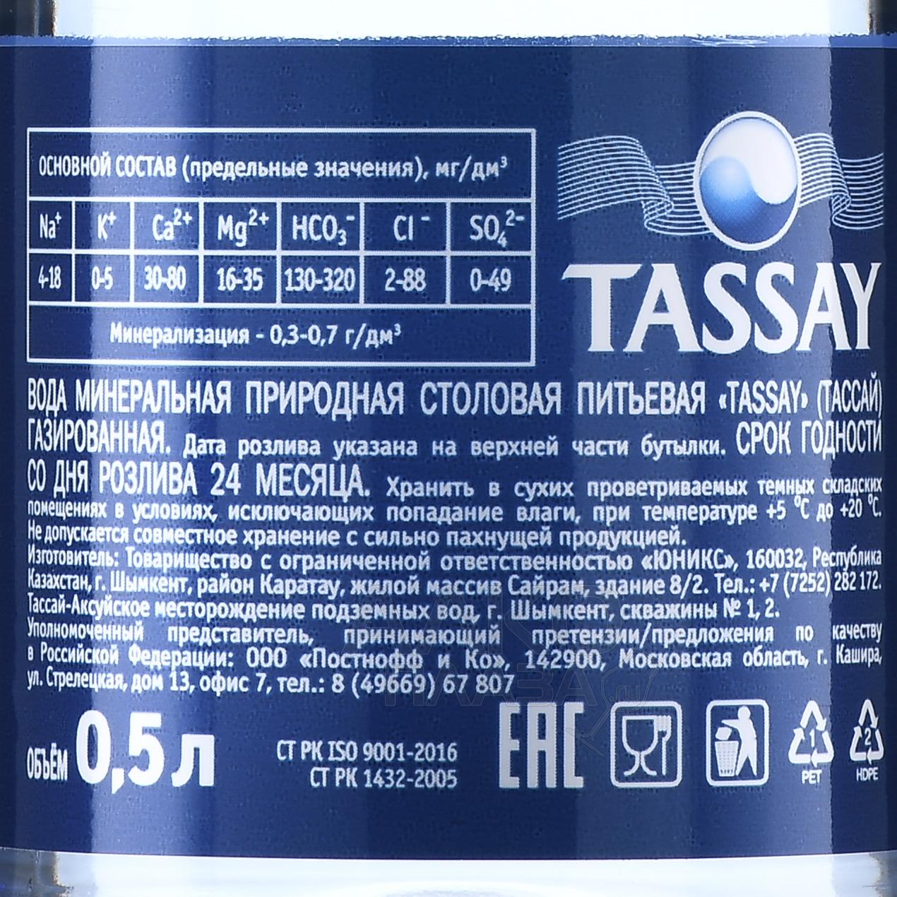 Вода Тассай 0.5 л газированная пластик Казахстан