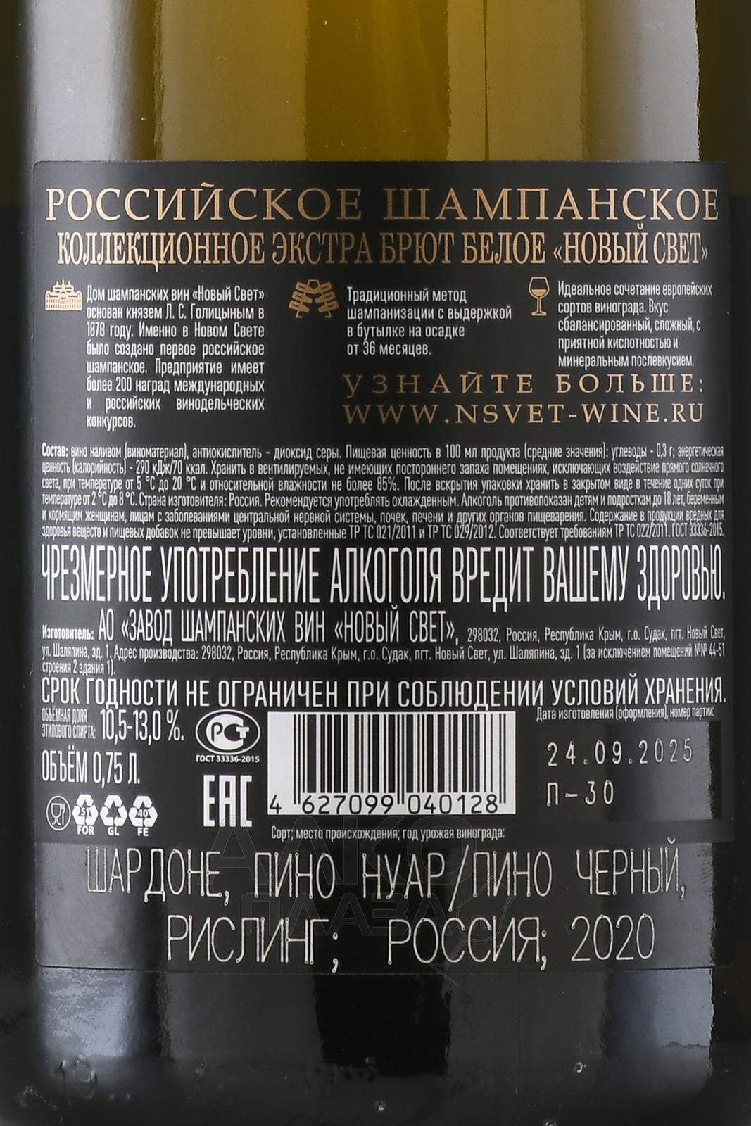 Вино игристое Новый Свет Коллекционное белое экстра брют 0.75 л