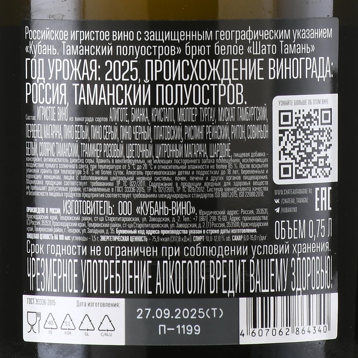 Chateau Tamagne - вино игристое Шато Тамань брют 0.75 л