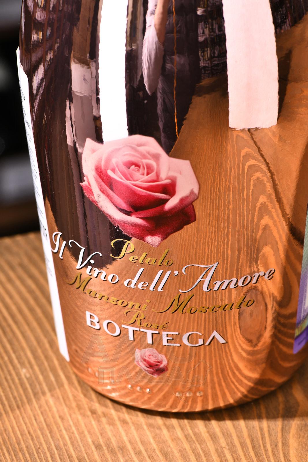 Розовое сладкое игристое вино Bottega Petalo Pink Manzoni Moscato 0,75 л реализуется в красивой бутылке классического типа объема, фронтальную часть которой украшает фотография розовой розы. Качественный 7-градусный алкоголь итальянского производства содержит отборные ягоды мускатного сорта, сорванные с лоз при высокой сахаристости. Мацерация отжатого сусла протекала при температуре пять градусов Цельсия, затем сок отделили от мезги и налили в стальную тару для длительной ферментации по методу Шарма-Мартинотти. Игристое вино не выдерживалось, следовательно, его дегустацию лучше проводить после покупки или на протяжении двух-трех лет.