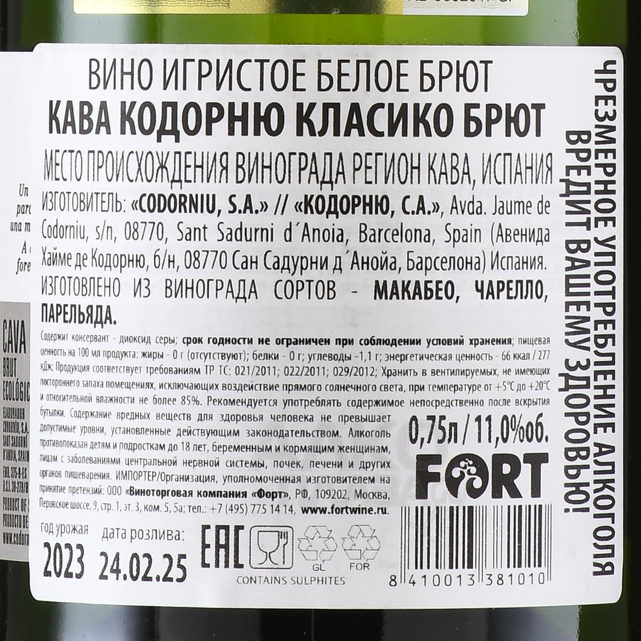 Cava Codorniu Clasico Brut - игристое вино Кава Кодорнью Класико Брют 0.75 л