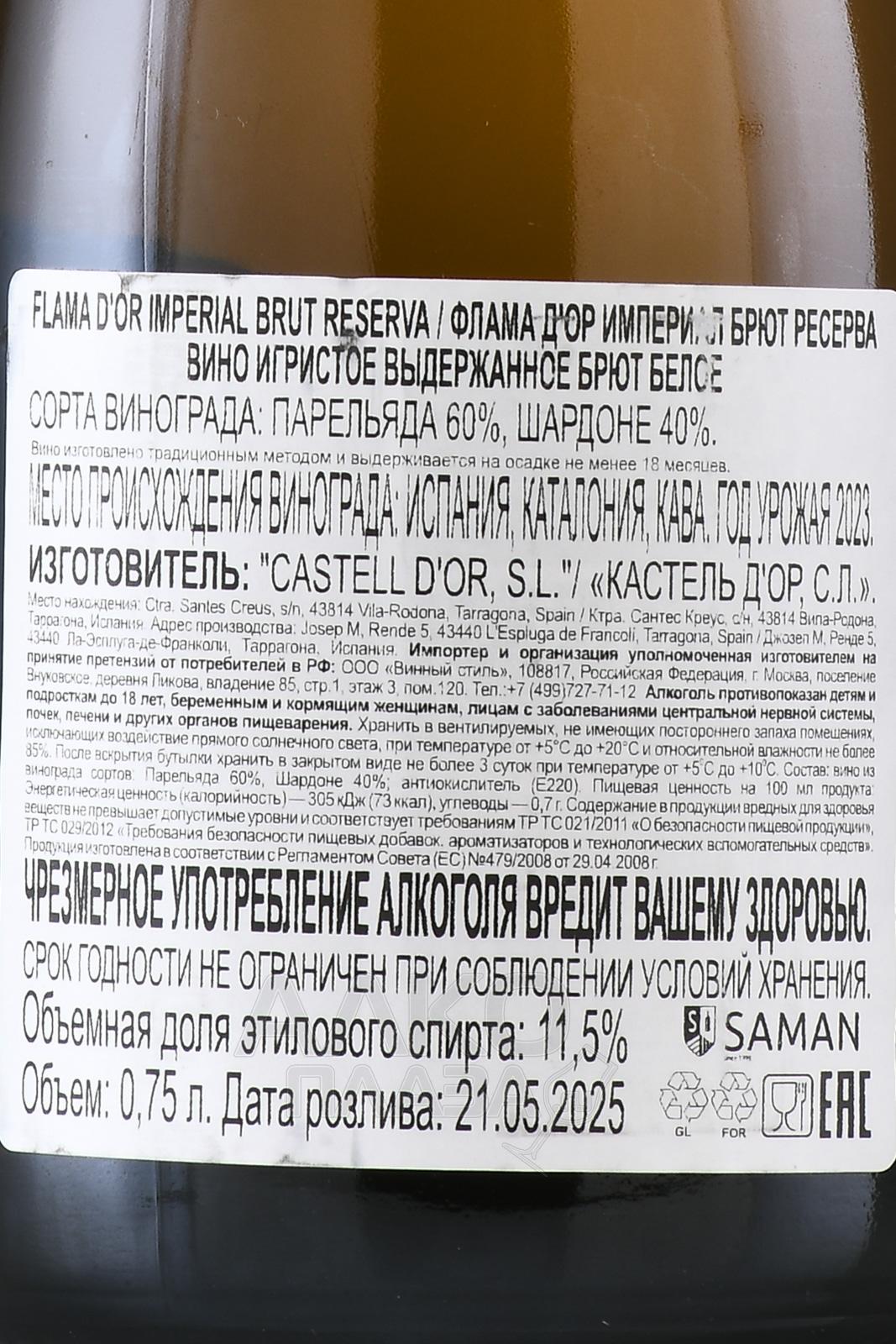 Cava Flama d’Or Imperial Reserva - вино игристое Кава Флама д’Ор Империал Резерва 0.75 л белое брют