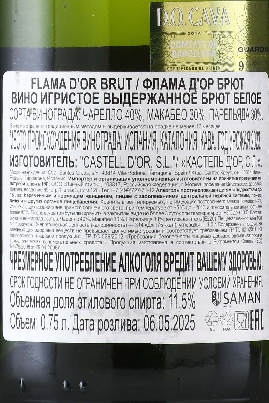 Cava Flama d’Or - вино игристое Кава Флама д’Ор 0.75 л белое брют