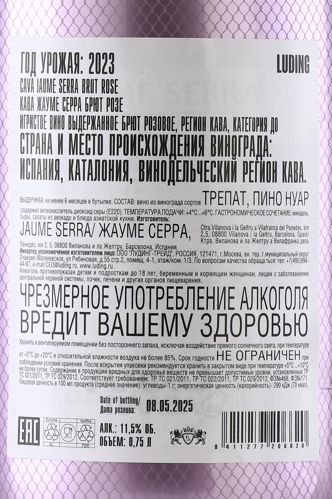 Игристое розовое вино брют Cava Jaume Serra Brut Rose 0,75 л создано в сердце Каталонии. Виноградники расположены на склонах, обращенных к Средиземному морю, что обеспечивает лозам мягкий климат и стабильный уровень влажности. Почвы здесь известковые и глинистые, хорошо удерживающие влагу и позволяющие корням проникать глубоко в грунт. Урожай собирается вручную. Винификация проходит традиционным методом вторичной ферментации в бутылке, что является главным отличием кавы от других игристых, изготовленных по ускоренным технологиям. Этот подход обеспечивает мелкие и устойчивые пузырьки, а также многослойность вкуса.