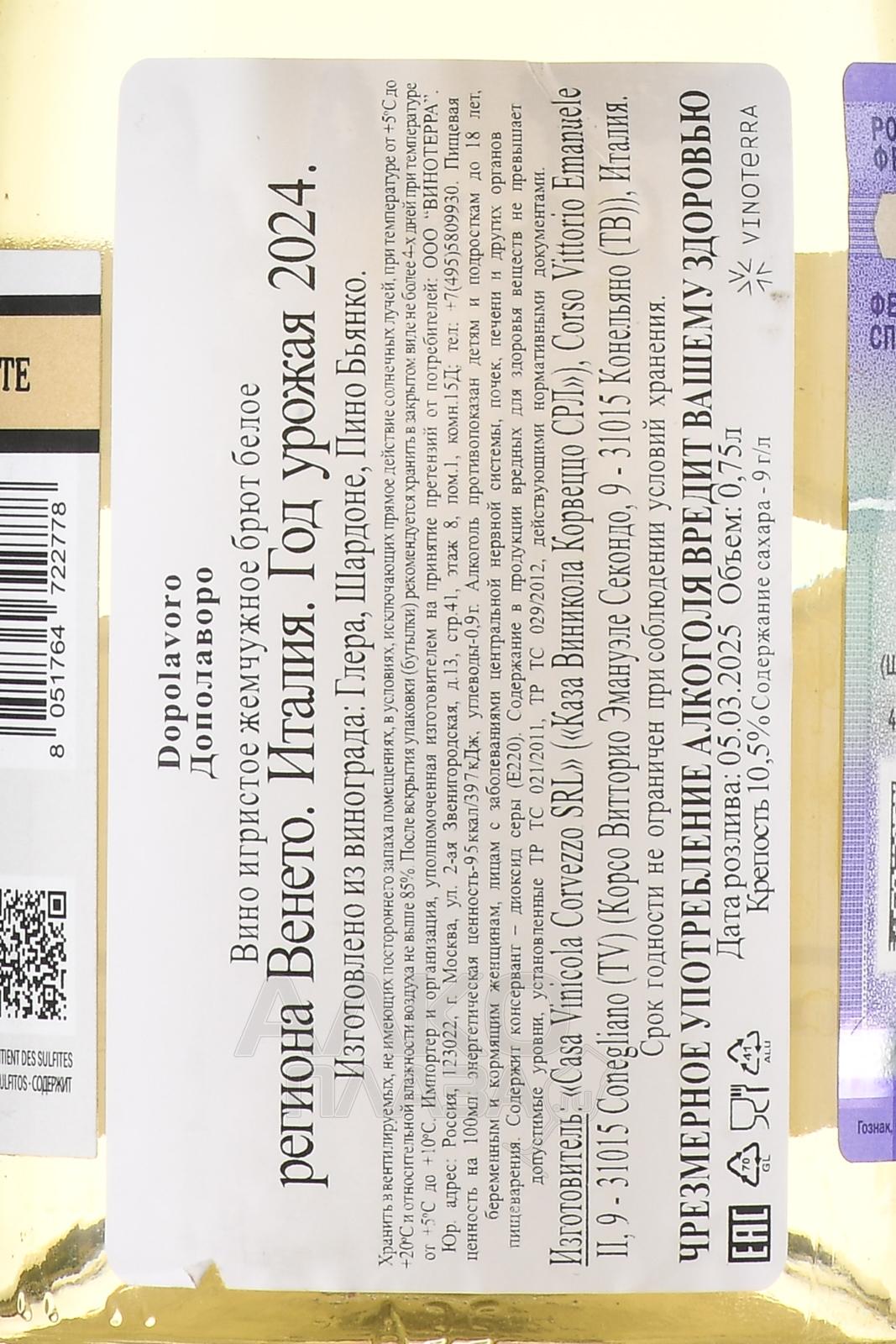 Corvezzo Dopolavoro Frizzante Biologico - вино игристое Корвеццо Дополаворо Фриззанте Биолоджико 0.75 л белое брют