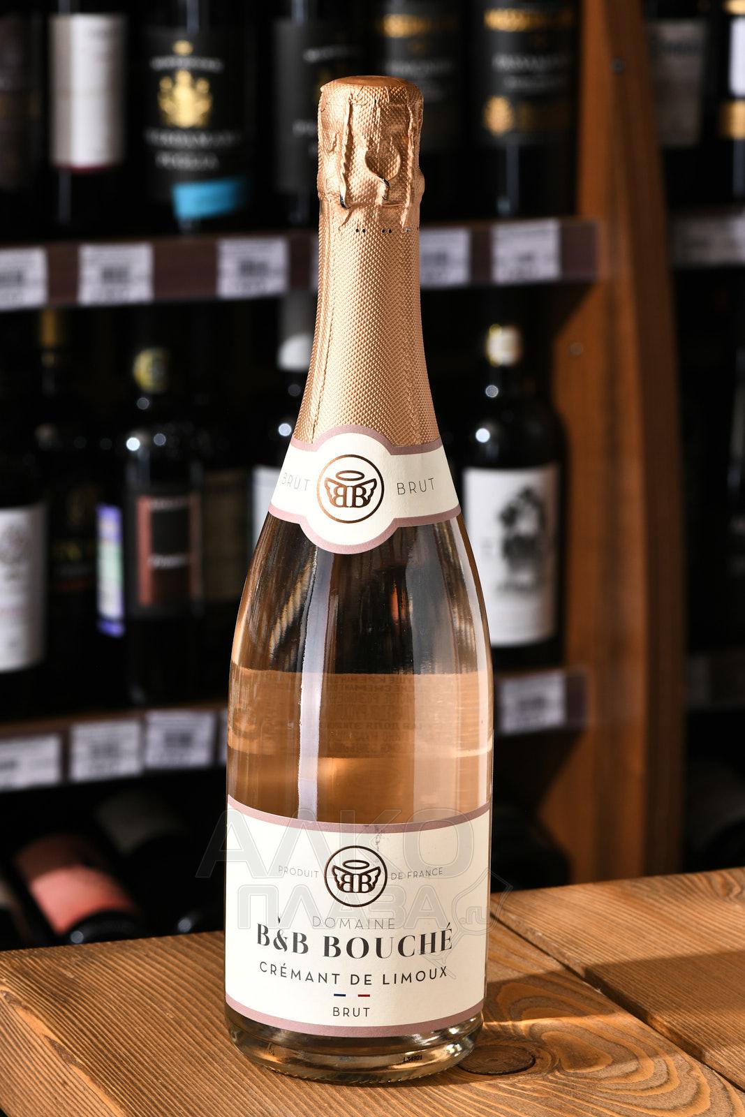 Розовое сухое игристое Domaine B&B Bouche Cremant de Limoux Brut 0,75 л изготовлено из осветленного ягодного сока, извлеченного щадящим способом пневматического прессования из ягод винограда красных и белых сортов. Урожай собрали в местности Лиму на территории области Лангедок-Руссильон (Франция). Сусло сбраживали в чанах из нержавеющей стали при невысокой температуре, которая постоянно поддерживалась на одинаковом уровне. Спиртное выдержали на осадке, затем отфильтровали и разлили по бутылкам.