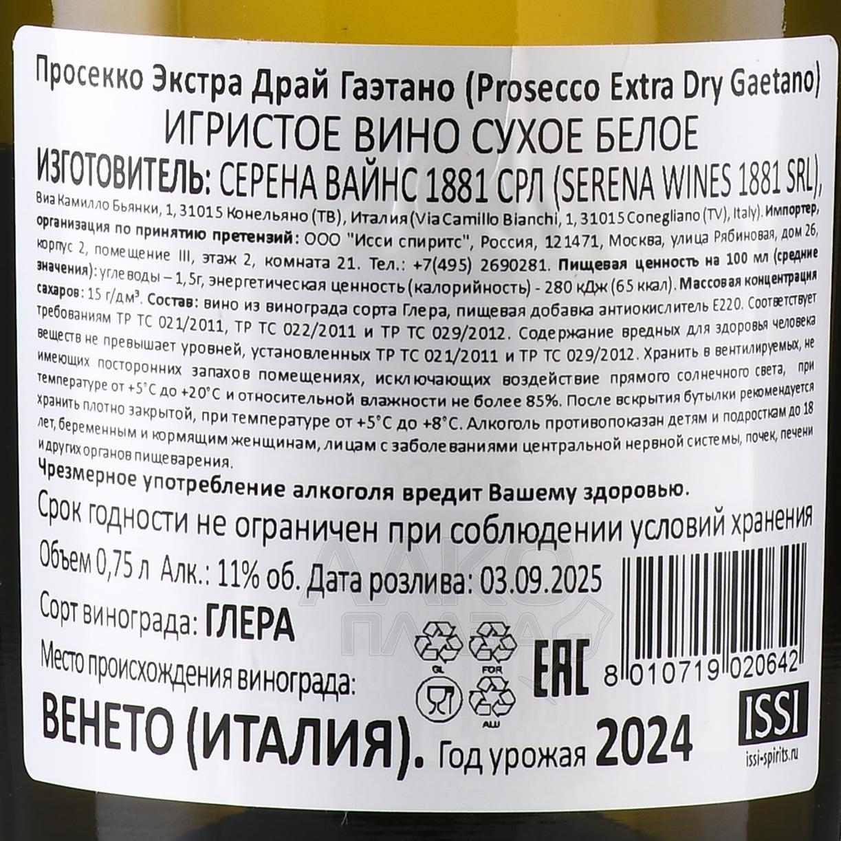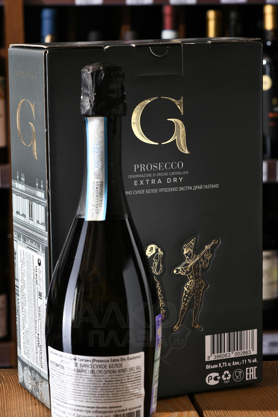 Gaetano Prosecco Extra Dry - вино игристое Гаэтано Просекко Экстра Драй 0.75 л белое экстра драй в п/у + 1 бокал