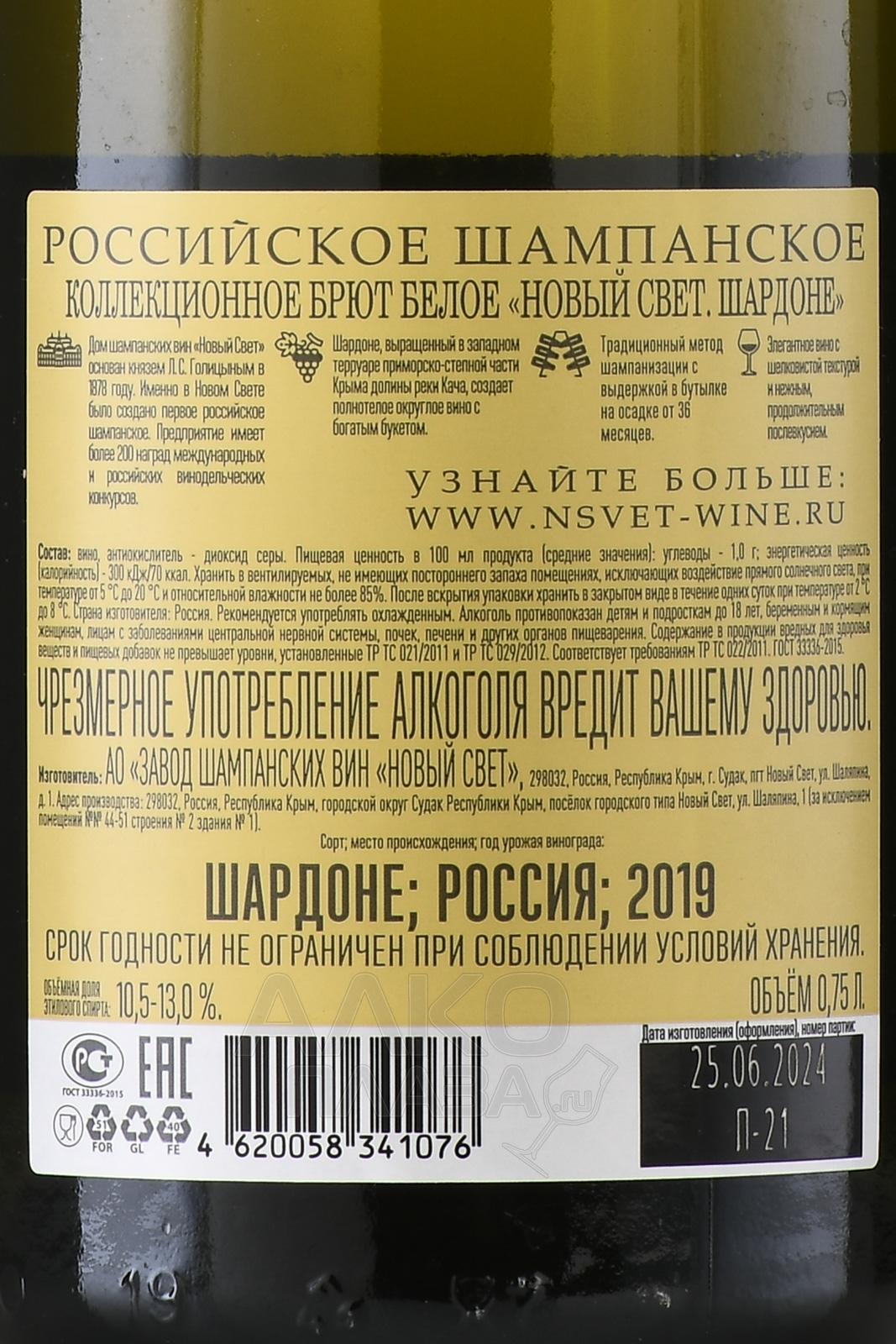 Игристое белое вино брют Новый Свет Шардоне коллекционное 0,75 л — образец крымского виноделия, в котором соединились старинные традиции и особенности терруара Южного берега. Напиток создан из отборных ягод распространенного французского и международного сорта винограда, выращенных на виноградниках в окрестностях Нового Света. Лозы здесь культивируются на высоте около 250 метров над уровнем моря, на известняковых почвах, с выходом к морю и защитой от ветров благодаря горным вершинам. Морской бриз и солнечный климат создают идеальные условия для созревания. Вторичная ферментация проходила по классической технологии шампенуаз в бутылках, а далее вино выдерживалось на осадке в тех же емкостях не менее трех лет.