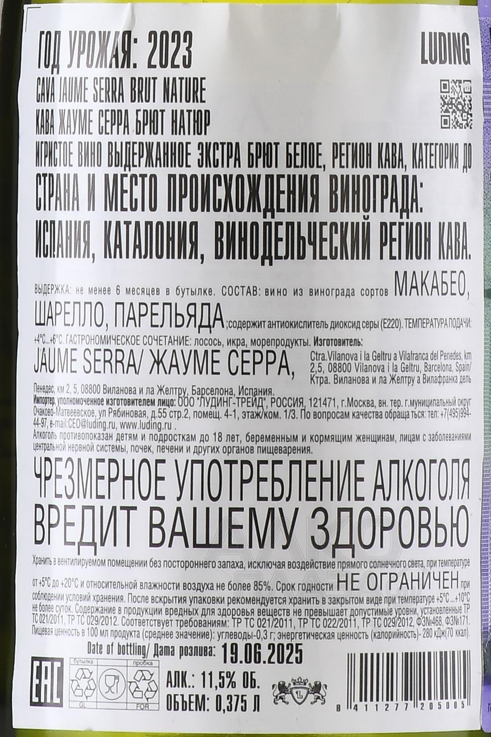 Игристое вино Jaume Serra Cava Brut Nature 0,375 л производится в регионе Пенедес, Каталония. Терруар здесь сочетает мягкий средиземноморский климат и известняковые почвы, что дает ягодам насыщенный вкус и хорошую кислотность. Вино делают по традиционному методу шампанизации, с вторичной ферментацией в бутылке. Выдержка на осадке длится не менее полугода, что придает напитку глубину и тонкую текстуру. В производстве не используется дозаж, поэтому белый брют натур сохраняет сухой характер и чистоту стиля. Кава Жауме Серра известна стабильным качеством и входит в число популярных испанских игристых вин, получая хорошие оценки от критиков за баланс свежести и минеральности. Вариация в бутылке половинного объема — отличный вариант для дегустации на 1-2 человек.