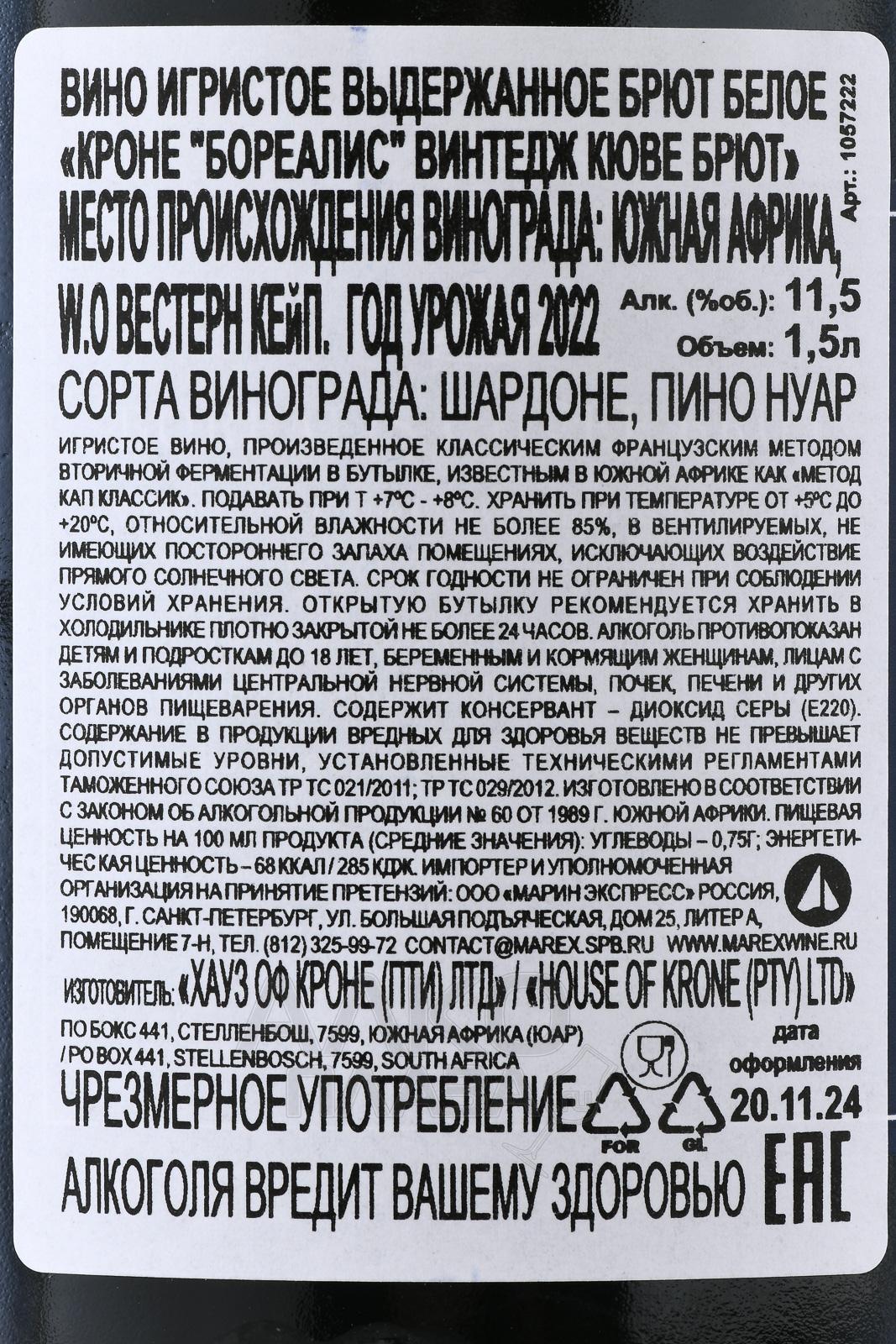 Krone Borealis Vintage Cuvee Brut - вино игристое Кроне Бореалис Винтедж Кюве Брют 1.5 л белое брют