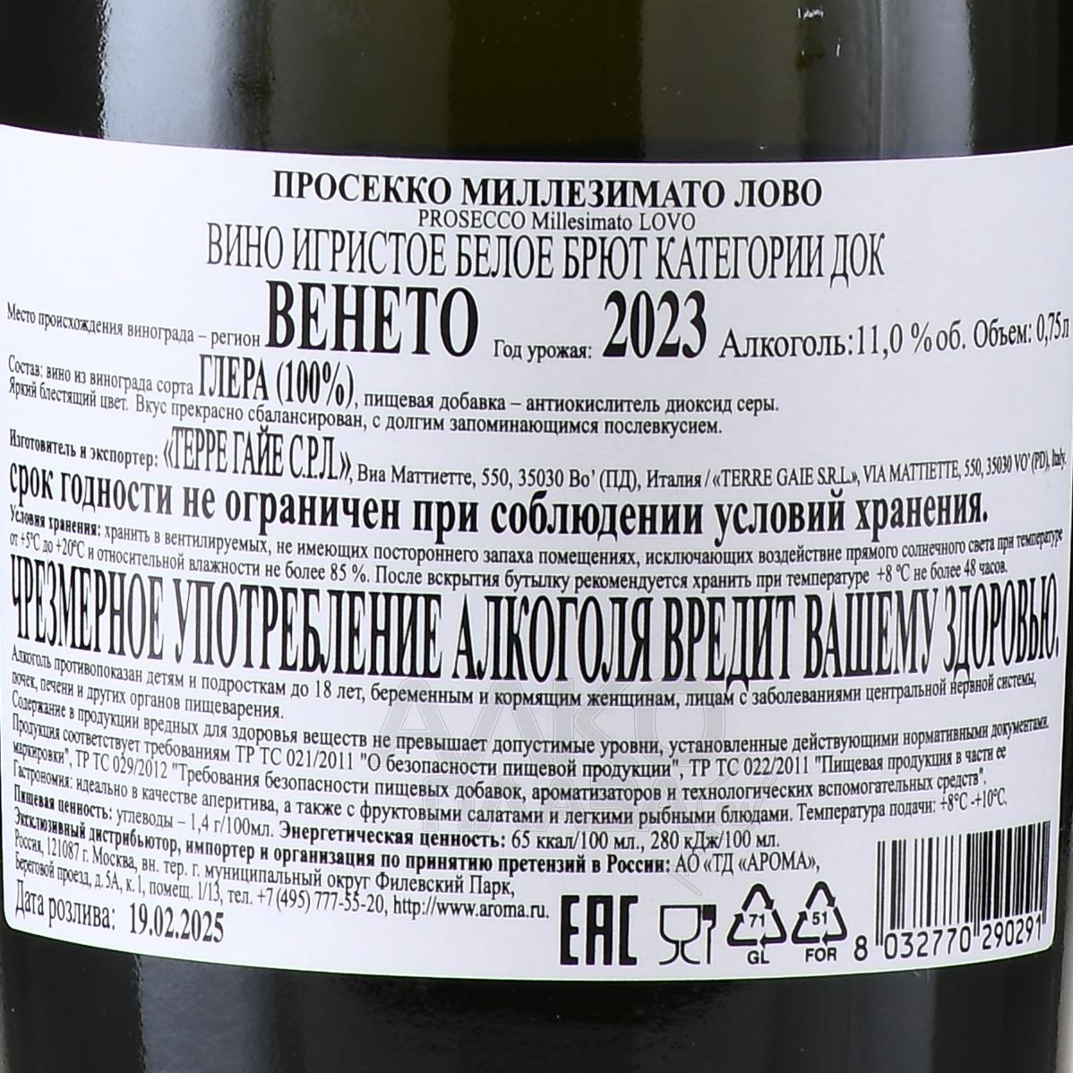 Вино игристое белое Лово Просекко Миллезимато 0.75 л — моносортовой итальянский брют из знаменитого региона Венето, который создан из автохтона Глера. Напиток с соблазнительной игрой пузырьков и белоснежной пеной изготавливается классическим способом методом Шарма.