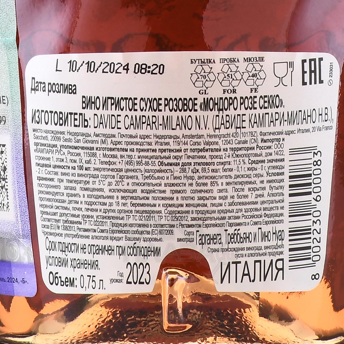 Mondoro Rose Secco - вино игристое Мондоро Розе Секко 0.75 л розовое сухое