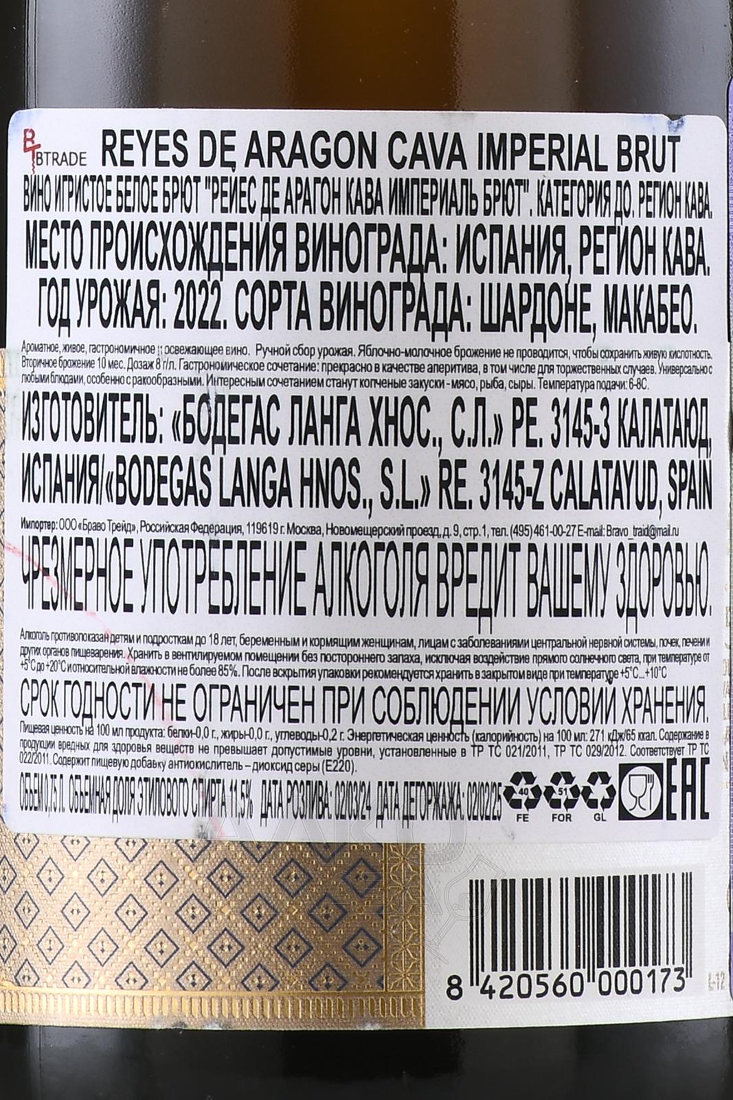 Игристое белое вино брют Reyes De Aragon Cava Imperial 0,75 л производится в регионе Арагон, где виноградники расположены на высоте около 500–700 метров над уровнем моря. Континентальный климат с жарким летом и холодной зимой создает резкие суточные перепады температур, благодаря чему ягоды сохраняют свежую кислотность и ароматическую насыщенность. Напиток производится традиционным методом шампенуаз, с длительной выдержкой на осадке не менее 20 месяцев, что формирует его сложный характер и кремовую текстуру. Отличительная черта этого купажа – соединение яркой фруктовой основы и минеральной свежести, что делает его близким по стилю к лучшим испанским кавам премиум-класса.