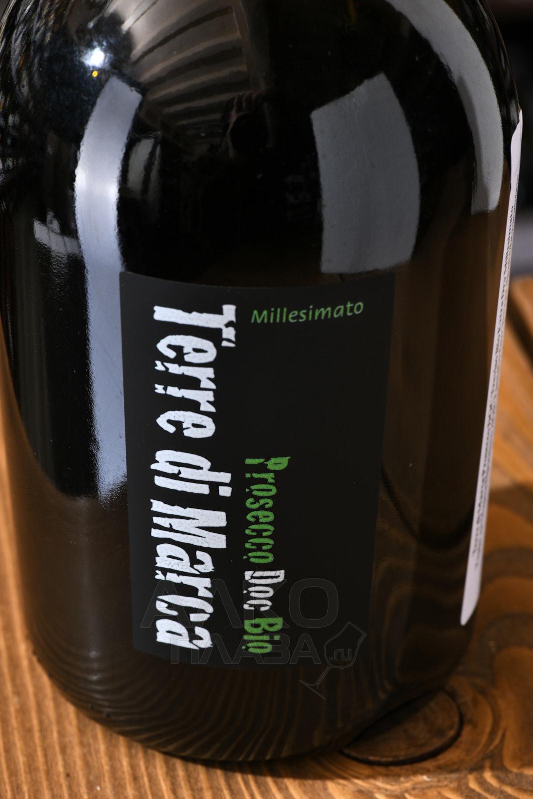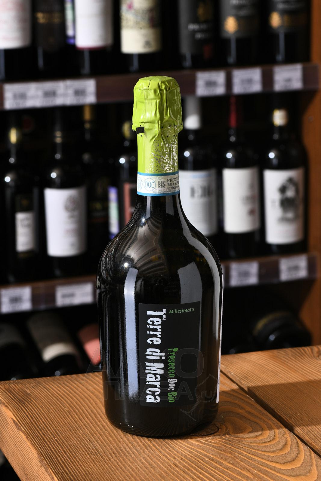 Белое сухое игристое вино Terre di Marca Prosecco DOC Treviso Bio Extra Dry Millesimato 0,75 л — качественный напиток итальянского производства, созданный на старинной семейной винодельне местечка Тревизо (регион виноделия Венето). Состав объединил виноград Глера одного урожайного года с биодинамических плантаций, прошедший двухмесячную ферментацию в автоклавах по методике Charmat.