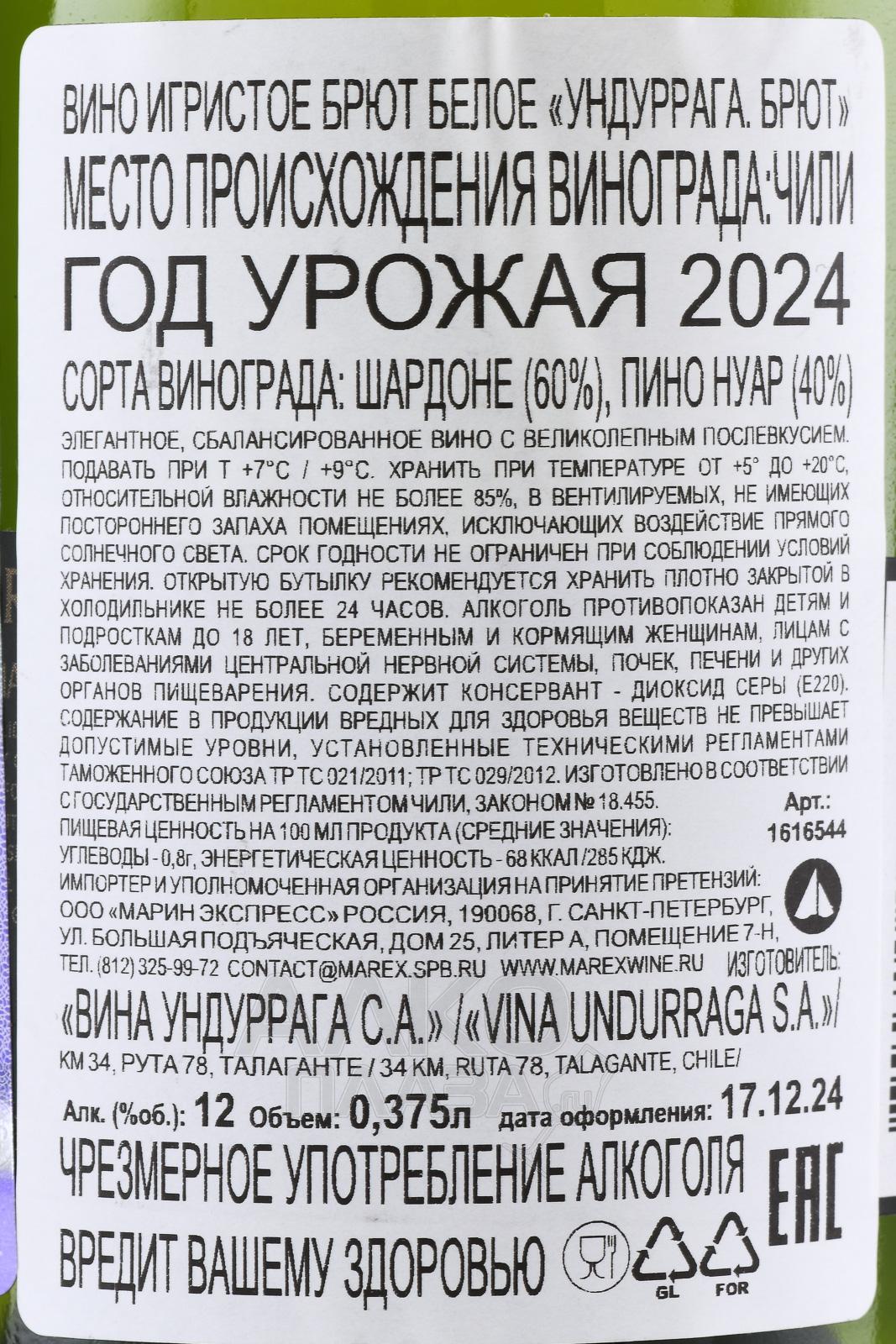 Игристое вино Ундуррага 0.375 л белое брют — яркий образец классической технологии Charmat, предполагающей вторичное брожение в герметичных резервуарах из нержавеющей стали. Этот метод сохраняет свежесть и изысканность исходного сырья, собранного вручную на солнечных склонах Центральной долины Чили, в условиях мягкого климата, охлаждаемого влиянием Тихого океана и Анд. Особенность местного терруара в уникальной комбинации вулканических почв и умеренных температурных колебаний, благодаря чему ягоды набирают тонкий баланс кислотности и зрелой фруктовости.