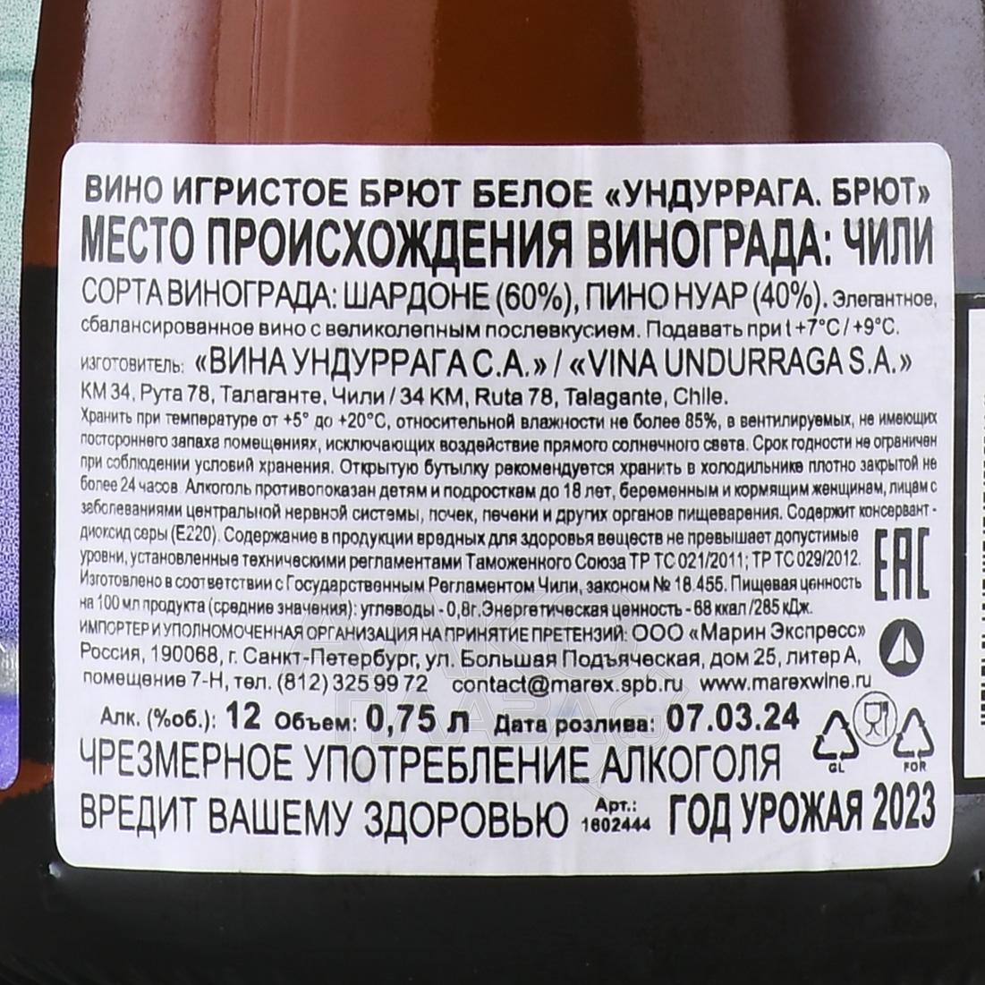 Undurraga Brut - игристое вино Ундуррага Брют 0.75 л