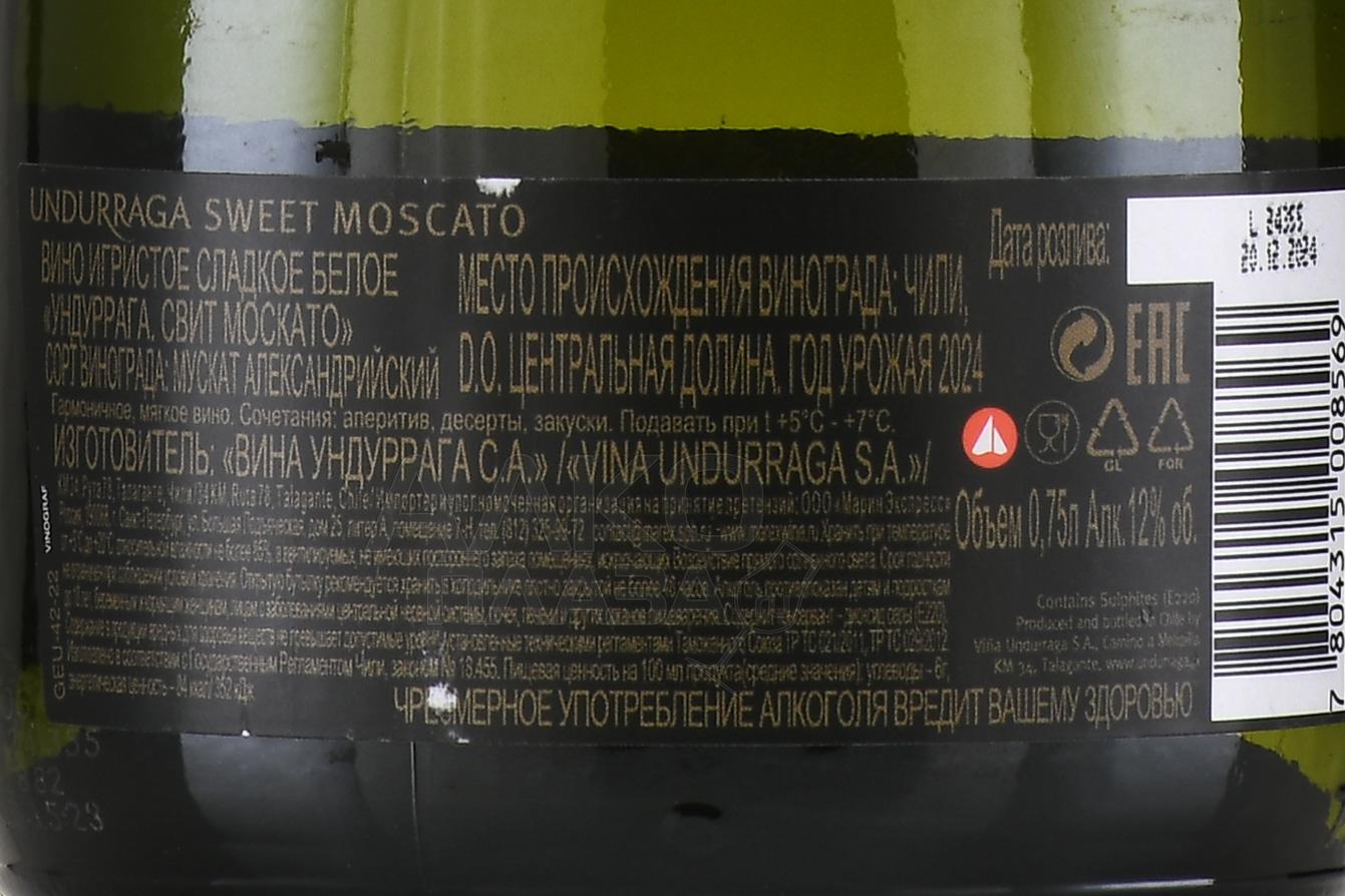 Вино Undurraga Moscato 0.75 л белое сладкое создано из ароматного сорта Москато, выращенного в уникальном чилийском терруаре Центральной Долины. Этот регион славится благоприятным сочетанием средиземноморского климата и прохладного влияния Тихого океана, что позволяет ягодам созревать постепенно, сохраняя выразительную кислотность и утончённый ароматический профиль. Виноград собирают вручную ранним утром, когда плоды максимально свежие и наполненные соком, затем бережно прессуют и ферментируют при низких температурах в стальных резервуарах по методу Шарма. Это позволяет сохранить свежесть и фруктовые ноты, а последующее короткое выдерживание на осадке дарит напитку изысканный и мягкий перляж.
