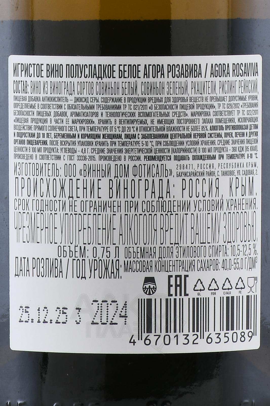 Вино игристое Агора Роза Вива 0.75 л белое полусладкое