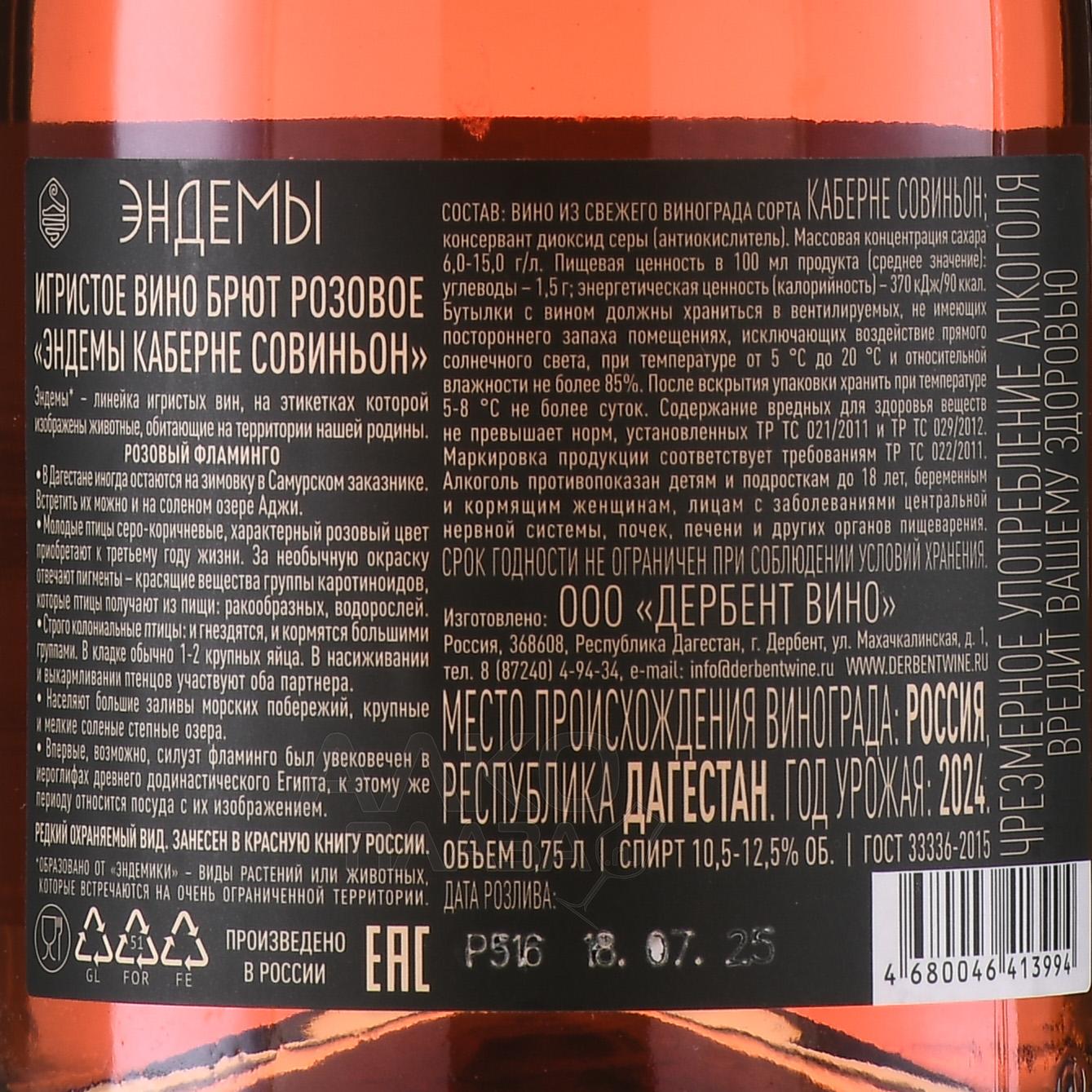 Игристое розовое вино Эндемы Каберне Совиньон 0,75 л создано в современном стиле с опорой на классические традиции виноделия. Виноградники расположены в зоне с теплым климатом и богатой минералами почвой. Здесь ягоды набирают яркий вкус и насыщенный аромат. Для производства используют сорт Каберне Совиньон, сусло из которого после мягкого отжима проходит ферментацию при контролируемой температуре. Вторичное брожение осуществляется резервуарным способом под давлением, что сохраняет свежесть и образует тонкий перляж. Выдержка непродолжительная, что дает возможность подчеркнуть фруктовый характер и сохранить легкость стиля. Уникальность вина заключается в том, что оно сочетает выразительный сортовой профиль и современную технологию, благодаря чему напиток получил признание на региональных конкурсах.