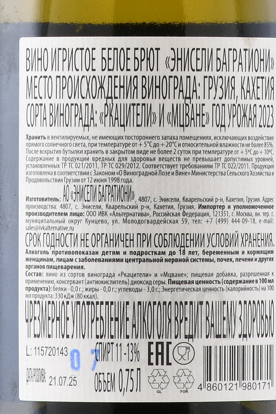 Вино игристое Энисели Багратиони 0.75 л белое брют