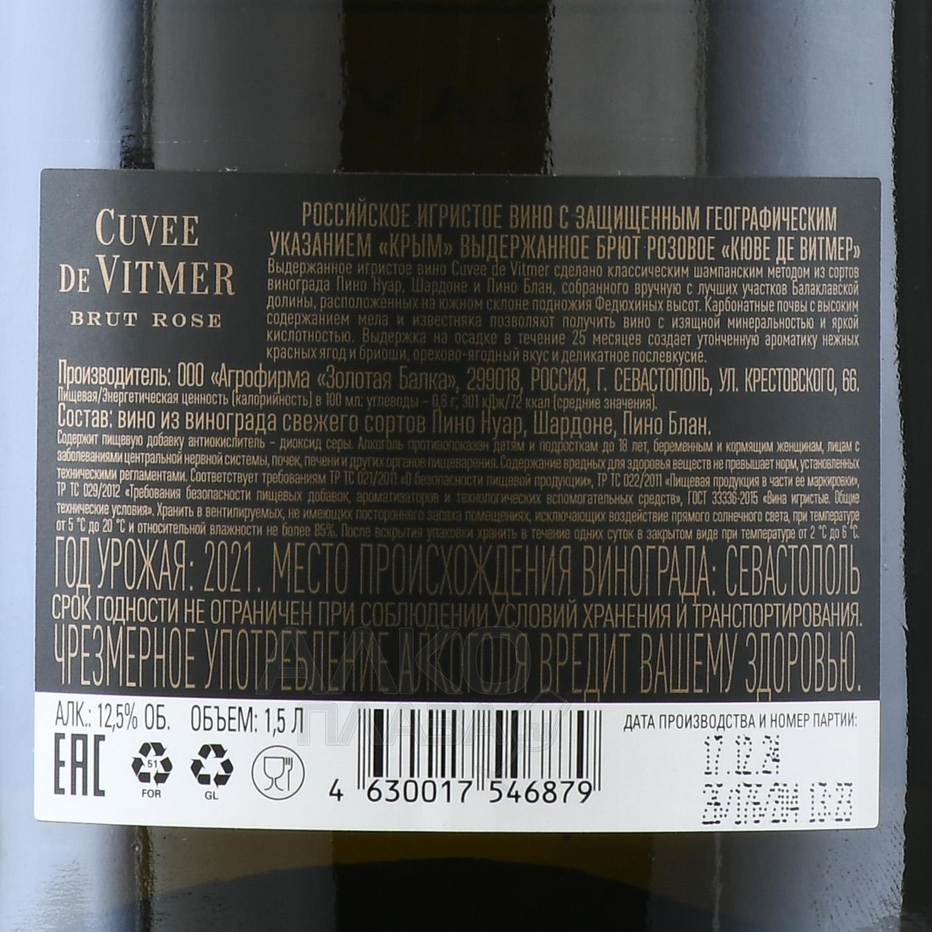 Cuvee de Vitmer - вино игристое Кюве де Витмер 1.5 л розовое брют
