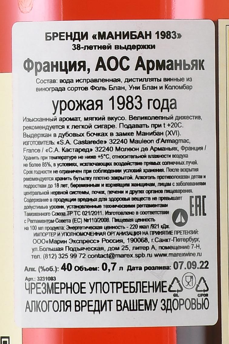 Chateau de Maniban 1983 - арманьяк Шато де Манибан 1983 года 0.7 л
