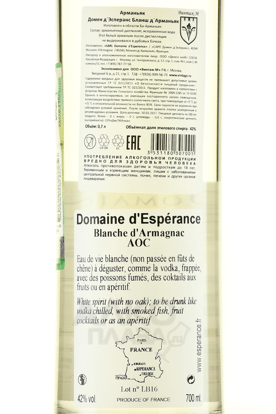 Blanche d’Esperance Bas-Armagnac - арманьяк Бланш д’Эсперанс Ба-Арманьяк 0.7 л