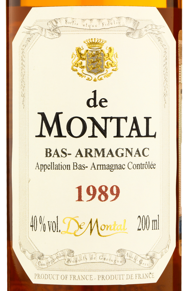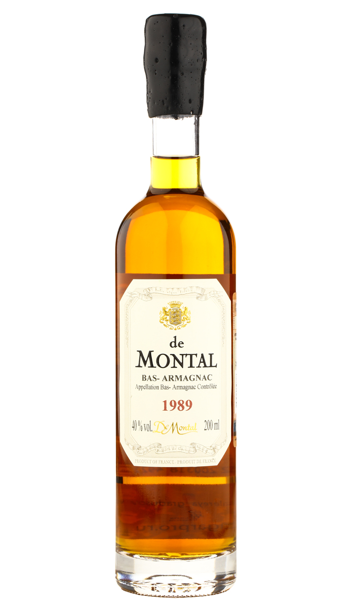 Арманьяк Armagnac de Montal Bas Armagnac 1989 год 0,2 л — винтаж французского именитого дома, в составе которого представлены элитные спирты белых автохтонных сортов винограда. Урожай для производства напитка сорокаградусной крепости вырастили на экологически чистых глинисто-кремниевых почвах знаменитого апелласьона Нижний Арманьяк и собрали вручную в одинаковый год. Сырье подверглось ферментации и перегонки в медных аламбиках, после чего была проведена очень длинная выдержка напитка в объемных барриках из дуба Ле Фреш и Монлезон — в них он находился по меньшей мере двадцать пять лет. Арманьяк отправили на продажу в маленьких стеклянных бутылках, их поместили в солидные светлые деревянные боксы. Такой алкоголь — отличный подарок для любого коллекционера спиртного в миниатюрном формате.
