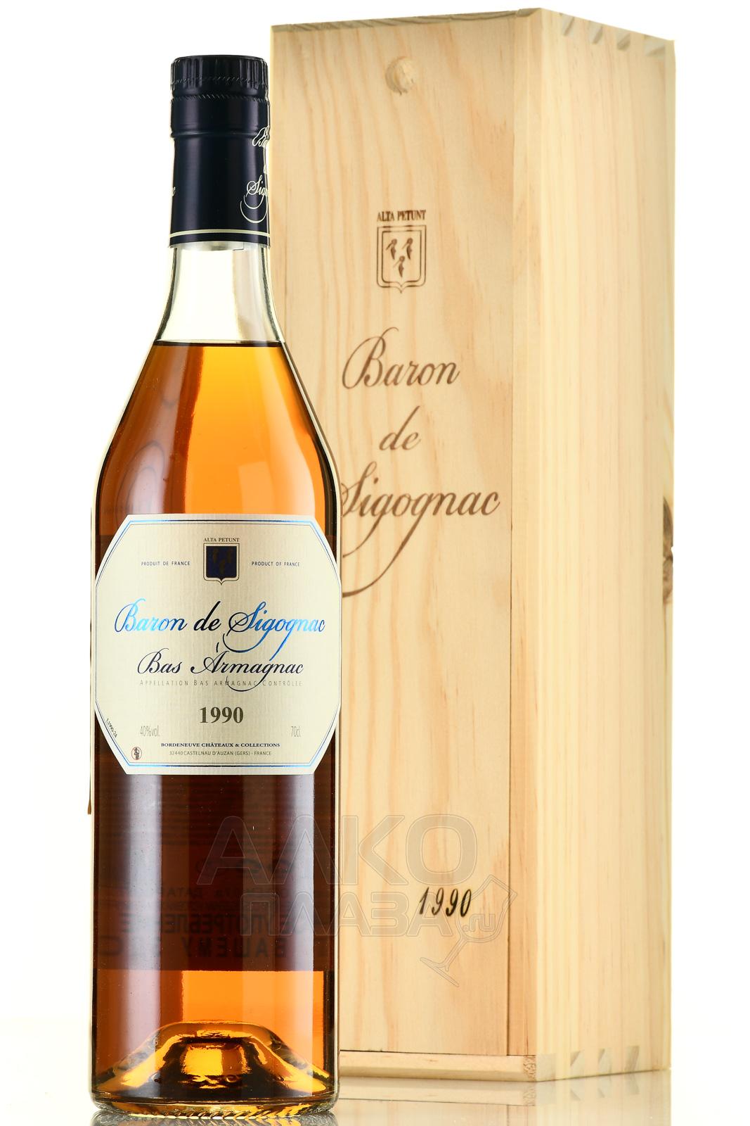 Арманьяк Baron de Sigognac 1990 г. 0,7 л в д/у – сувенирный релиз крепкого спиртного с престижных виноградников Западной Франции. Созревшие в мягком океаническом климате на богатых кремнеземом песчано-глинистых почвах ягоды собрали вручную и методом традиционной термоконтролируемой ферментации превратили в сухое белое вино с высокой кислотностью и небольшой крепостью. Оно стало идеальной базой для создания тонких и ароматных дистиллятов невероятной сложности. Спирты перегнали в медном кубе 1920 года создания, бережно передающемся по наследству от поколения к поколению в семье производителя, и выдержали более 20 лет в бочках из гасконского дуба. Созревание проходило сначала в новых, а затем в старых емкостях, благодаря чему после купажирования напиток приобрел многогранный и элегантный характер. Это превосходный подарок, который по достоинству оценят коллекционеры редких сортов алкоголя.