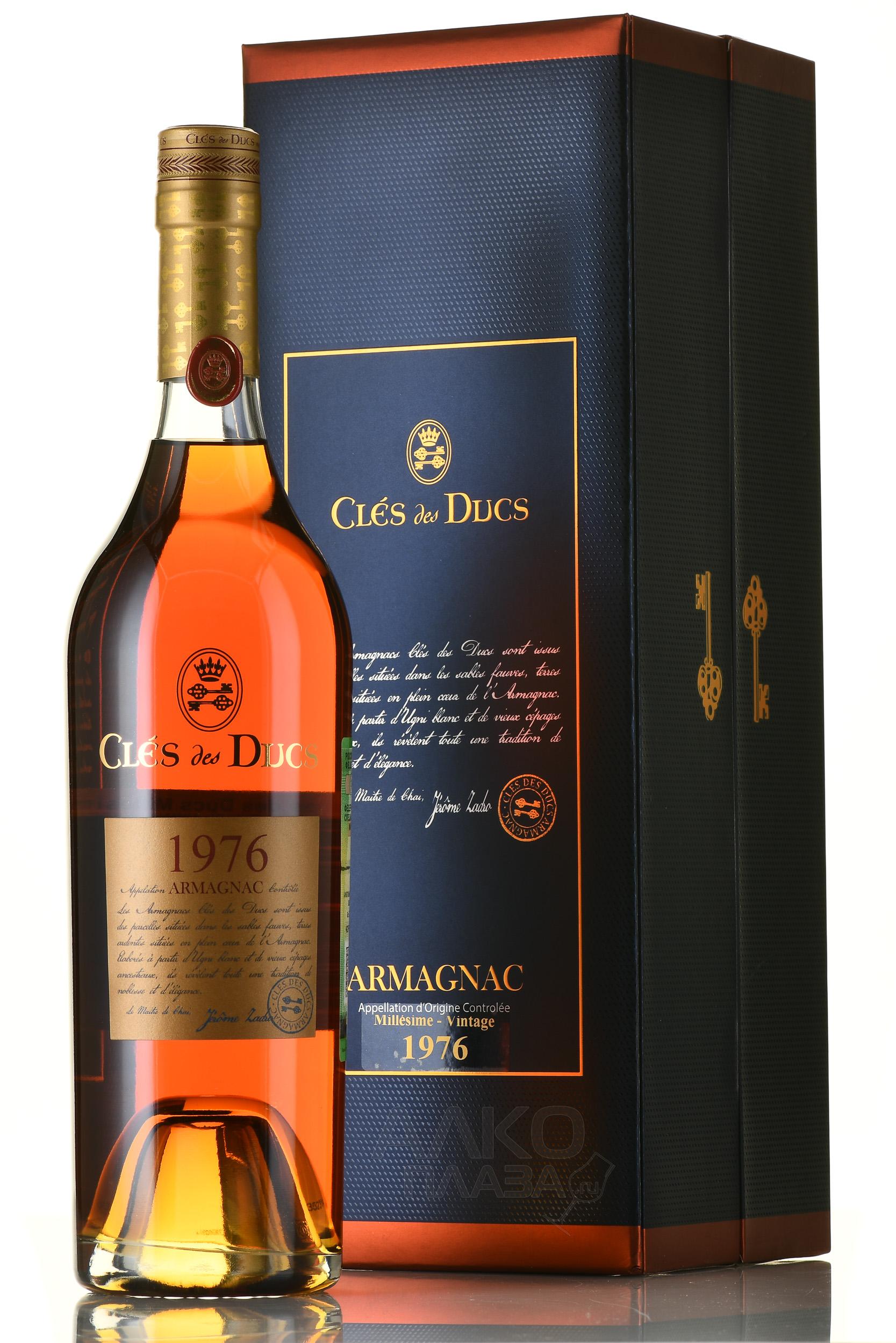 Арманьяк Cles des Ducs 1976 год 0.7 л в п/у — коллекционный бренди из Гаскони в подарочной упаковке, изготовленный из сорта Уни Блан, который был выращен на рыжих почвах региона Ба Арманьяк и собран в определенный год. Виноградные спирты, дистиллированные из базового вина, поместили в новые и использованные бочки из древесины лимузенского дуба на долгую выдержку. Миллезимный арманьяк от именитой компании Кле де Дюк станет памятным подарком именинникам, рожденным в 1976 году.