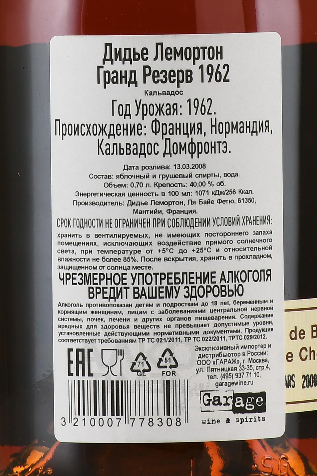 Lemorton Vintage 1962 Gift Box - кальвадос Лемортон Винтаж 1962 0.7 л в п/у