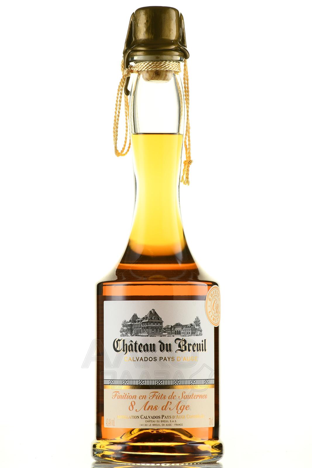 Кальвадос Chateau du Breuil Finition en Futs de Sauternes 8 лет 0,7 л в п/у – подходящий вариант для тех, кто искал необычный подарок для особого повода. Красиво оформленный алкоголь премиального класса представлен в стильном гифт-боксе. Бутылка оригинальной формы с очень длинной и узкой «шеей», закупоренная натуральной деревянной пробкой, тоже привлекает внимание. В процессе производства применялись как традиционные, так и авторские методики. Яблоки особых кальвадосных сортов собирали в садах региона Пэи д`Ож в октябре-ноябре. Из смешали в строго определенных пропорциях и отжали сок, который сбраживали с натуральными дрожжами 6 недель. Далее осуществлялась двойная классическая дистилляция в медных кубах с отбором «голов» и «хвостов». «Сердце» – самую чистую центральную фракцию поместили для выдержки во французские дубовые бочки на 7,5 лет. Еще полгода кальвадос дозревал в бочонках из-под сладкого вина сотерна.