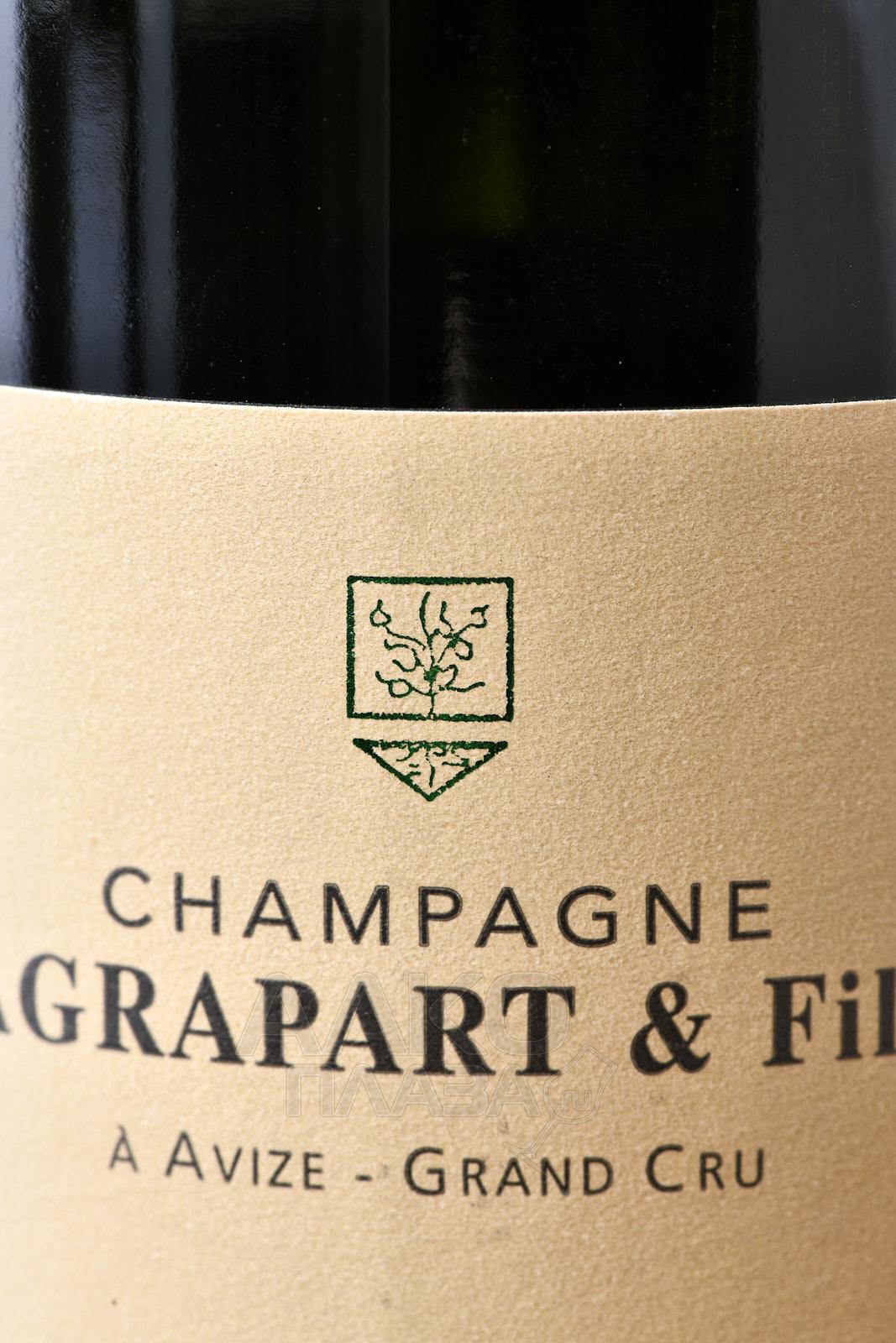 Белое сухое шампанское Agrapart Terroirs Blanc de Blancs — марочный брют с содержанием сахара 7 г на литр, изготовленный из одного сорта Шардоне. Сырье получили с лучших виноградников Кот де Блан, имеющих статус Гранд Крю. Лозы со средним возрастом 50 лет обрабатываются в рамках органического земледелия. Урожай с них собирали вручную. Игристое вино производится по традиционной технологии шампенуаз, предусматривающей вторичное брожение в бутылках. Перед бутилированием шампанское не осветляется и не фильтруется. Оно выдерживается на осадке около 4-х лет. Потенциал хранения элитного брюта составляет 3-5 лет.