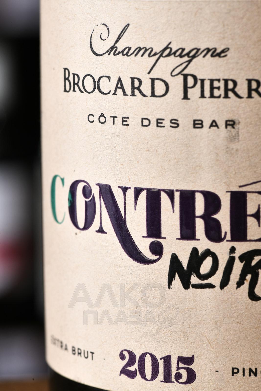 Белое сухое шампанское Brocard Pierre Contreé Noir Extra Brut 2015 г. — 12-градусный брют класса AOC (наименование, контролируемое по происхождению), созданный в коммуне Celles-Sur-Ource французской области Champagne. Винтажный шипучий алкоголь гарантированного качества произвели по методу шампенуаз, т. е. с применением ферментации в стальных автоклавах и бутылках. Завершающим этапом стала выдержка на осадке.