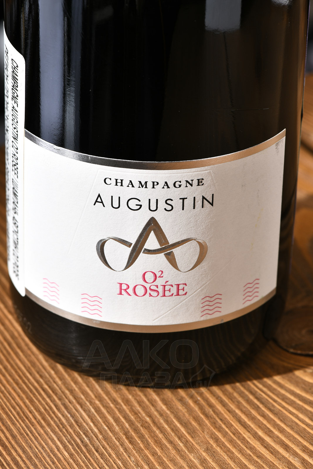Шампанское розовое Champagne Augustin O2 Rosee 2017 г. 0,75 л — премиум-брют розе из сорта Пино Нуар, выращенного на биодинамическом винограднике в деревне d'Avenay Vai (Монтань де Реймс). Специальное кюве олицетворяет собой природный элемент воду, без которого немыслимо существование человека и производство вина. Урожай собирали на пике зрелости вручную. Сусло мацерировали несколько часов на кожице для окрашивания в розовый цвет. Первичная ферментация 11 месяцев протекала в стальных чанах. Вторичное брожение осуществлялось в бутылках по классической технологии. Брют выдерживался на тонком осадке 3 года.