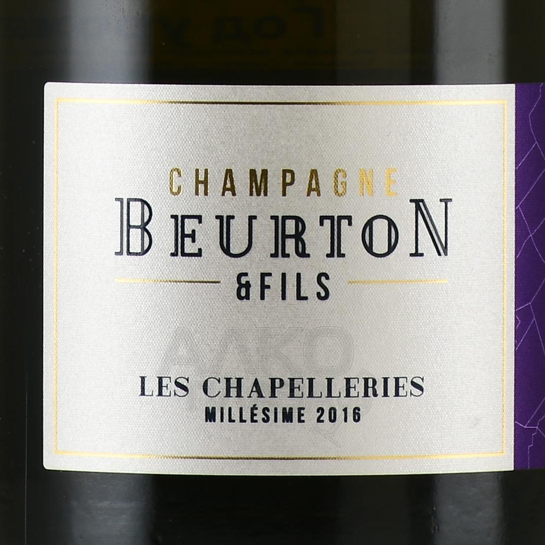 Белое шампанское Champagne Beurton & Fils Les Chapellries 0,75 л – брют из коллекции Single Vineyard. Образцы линейки созданы из урожаев с одного виноградника, благодаря чему имеют ярко выраженный терруарный характер. Напиток создан классическим методом шампенуаз из одного красного сорта винограда, популярного в Шампани. Ферментация проводилась в чанах из нержавеющей стали. Далее спиртное бутилировали и оставили для повторного брожения. Органолептический профиль брюта обогатили с помощью дозажного ликера, выдержанного в бочках. Концентрация сахара в добавленной смеси составила 5 г/л.