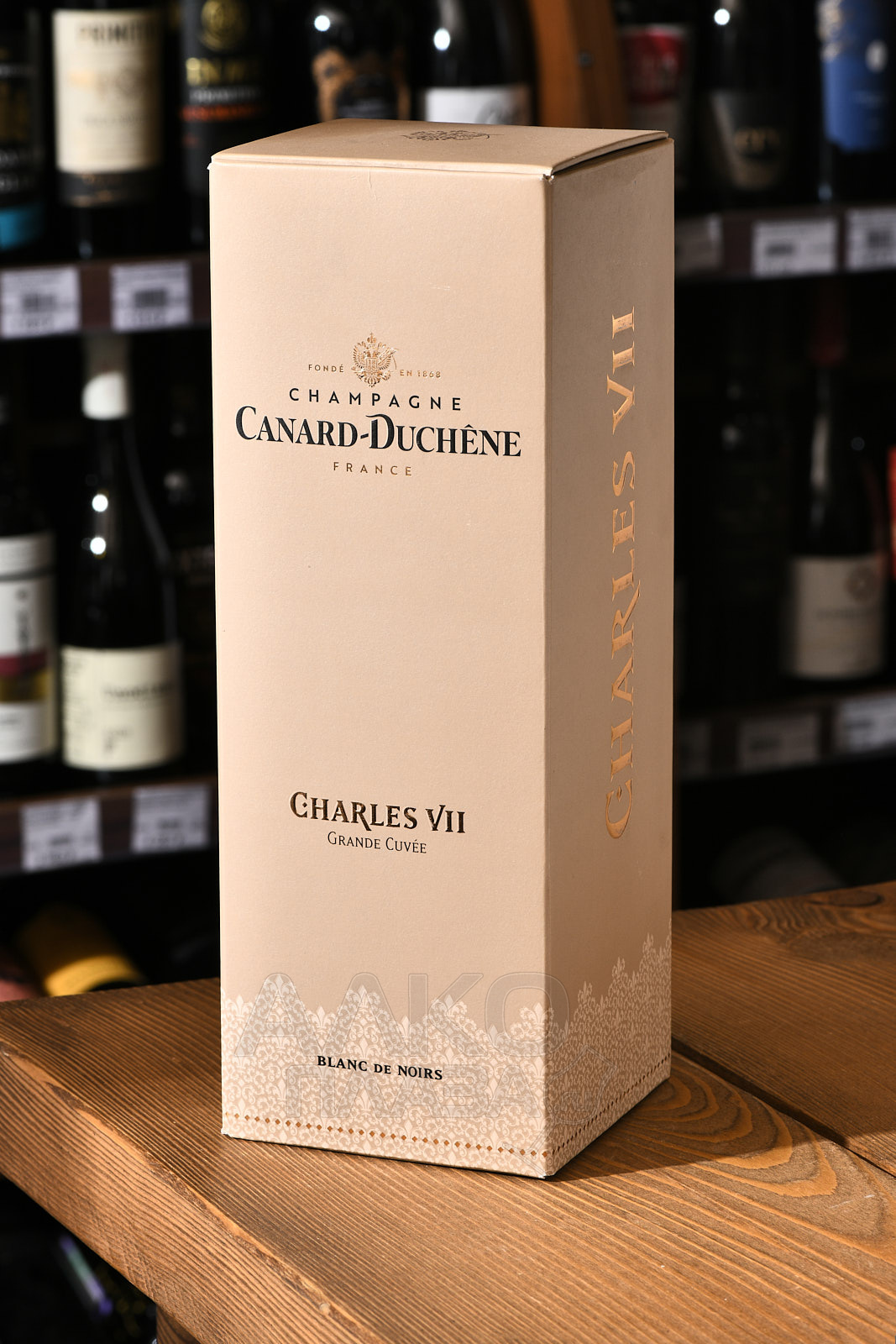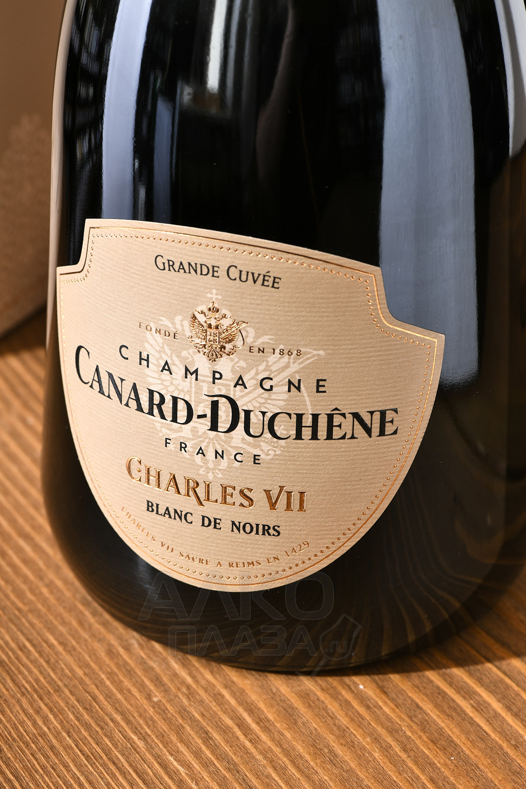 Шампанское белое брют Champagne Canard-Duchene Charles VII Blanc de Noirs 0,75 л в п/у – купаж на основе красных сортов винограда из богатой коллекции престижного производителя департамента Марна. Напиток носит имя французского короля Карла VII, вернувшего территории Шампани в состав своей вотчины. Выпуск первого образца этой разновидности ознаменовал собой столетие компании. На винификацию пошли урожаи из региона Монтань-де-Реймс, с участков преимущественно категории Гран Крю и Премьер Крю. Перед повторной ферментацией в бутылках в бленд добавили резервные вина, выдержанные в дубе по солерному методу, который применяется в изготовлении испанского хереса. Срок созревания на осадке в стекле составил 4 года.