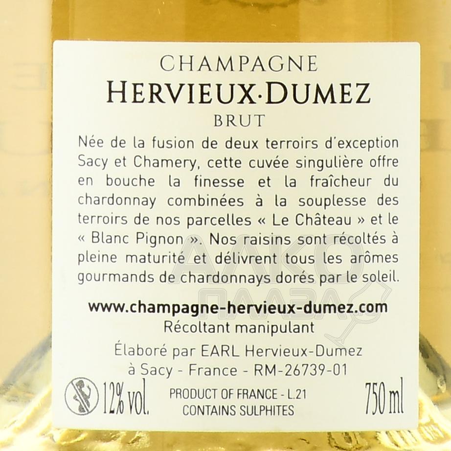 Белое сухое шампанское Champagne Hervieux-Dumez Brut de Chardonnay 2020 год 0,75 л — 12-градусный алкоголь Франции, который относится к вариациям защищенного географического наименования. Его изготовили в пределах Шампани из стопроцентного белого винограда этого региона, собранного на протяжении одного года. Сочные ягоды обработали в полном соответствии с методикой бутылочной шампанизации, также брют выдерживался на осадке.