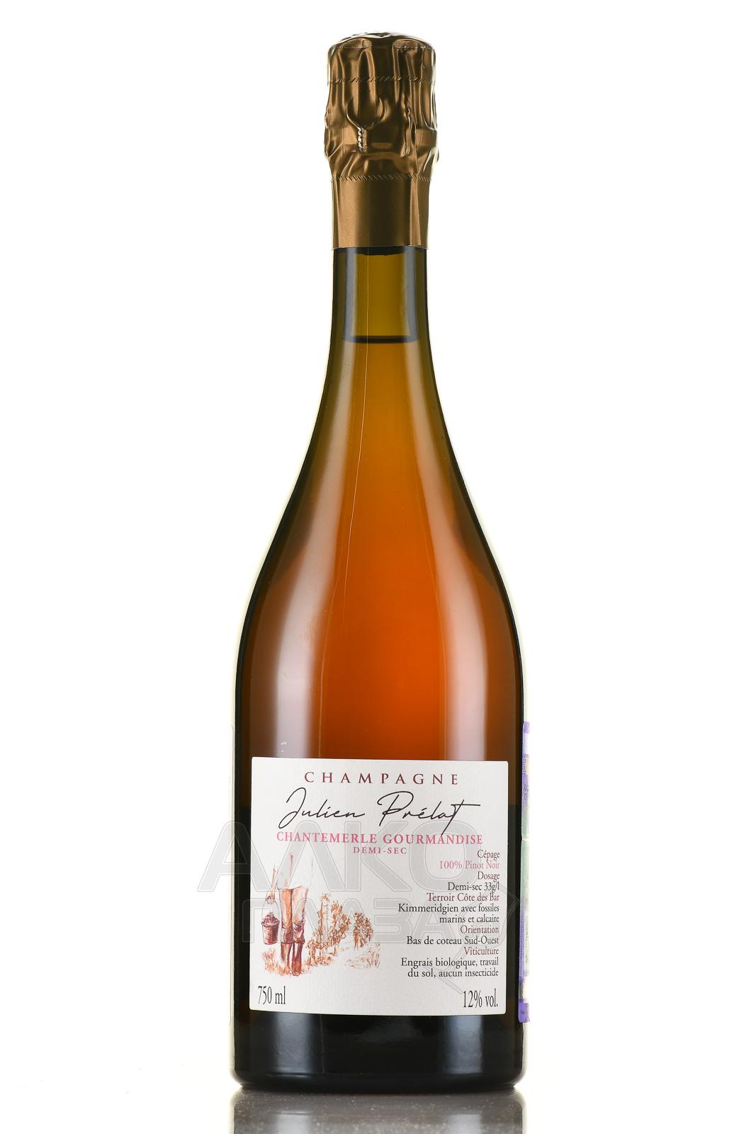 Розовое полусухое шампанское Julien Prelat Chantemerle Gourmandise AOC 2019 г. — высококачественный игристый напиток защищенного географического наименования, предлагаемый при уровне содержания алкоголя 12 градусов. Его создали в регионе Франции Шампани на базе разрешенного к использованию в этой местности красного винограда, обработанного в соответствии с методикой шампенуаз. Содержание сахара в шампанском достигает 33 г/л.