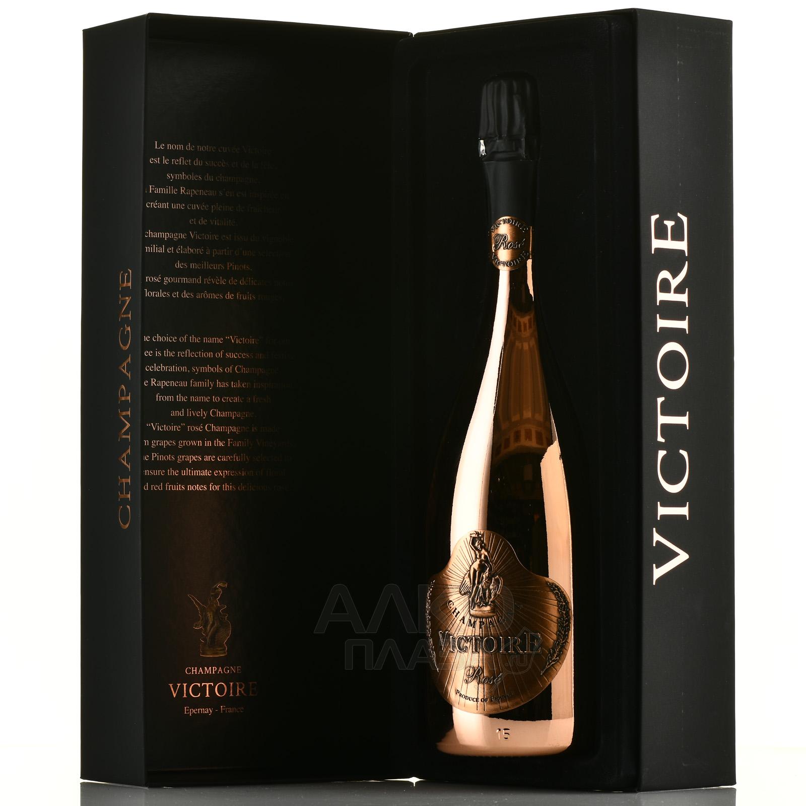 Розовое сухое шампанское Champagne Victoire Rose 2017 г. 0,75 л продается в непрозрачной бутылке золотистого цвета и комплектуется роскошной подарочной коробкой. Полный цикл изготовления брюта провели в регионе Франции Шампани посредством обработки красного и белого винограда удачного урожая одного сезона сбора. 12-градусный алкоголь ферментировался по методу бутылочной шампанизации и выдерживался на осадке.