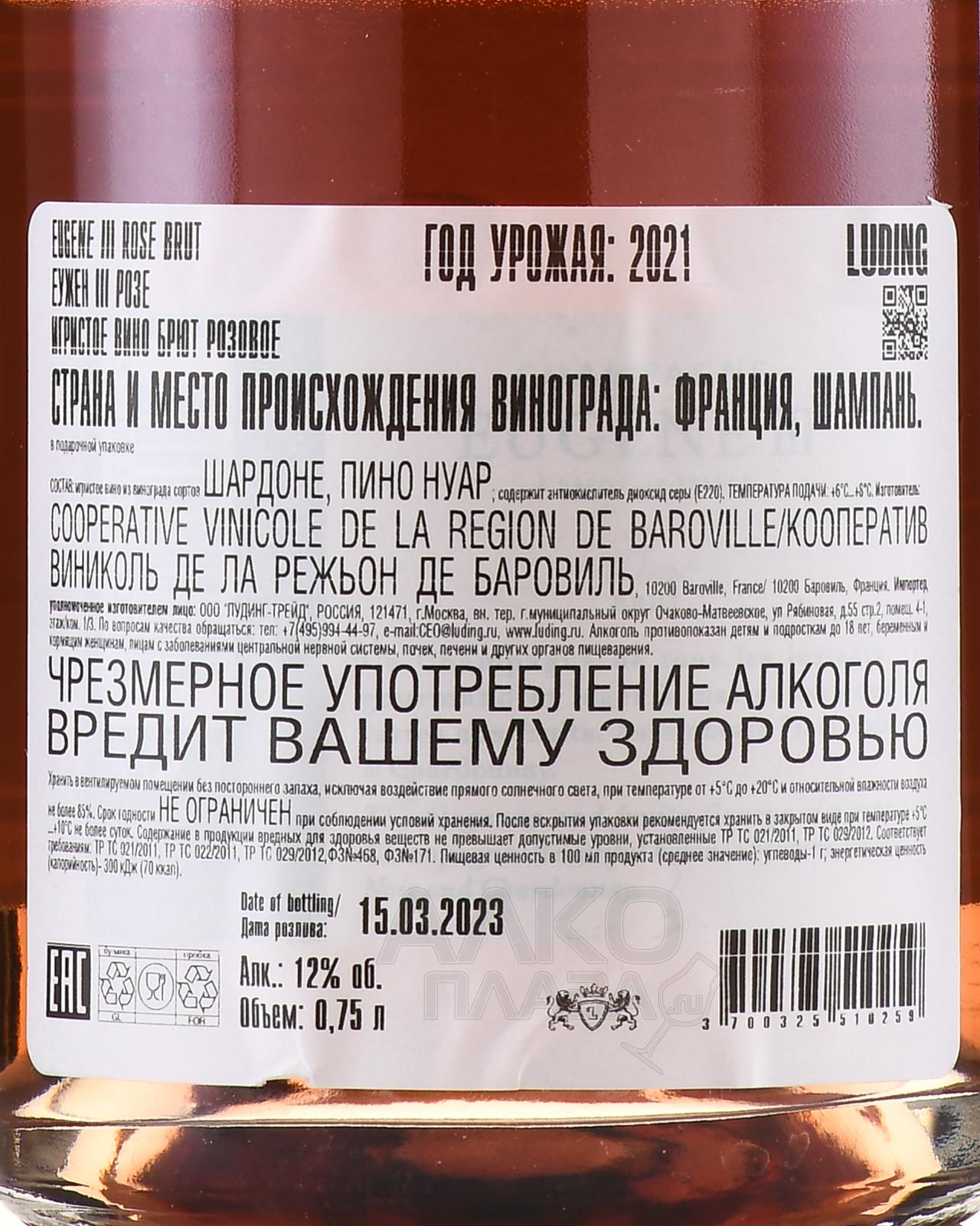 Eugene III Rose - шампанское Еужен 3 Розе 0.75 л розовое брют в п/у