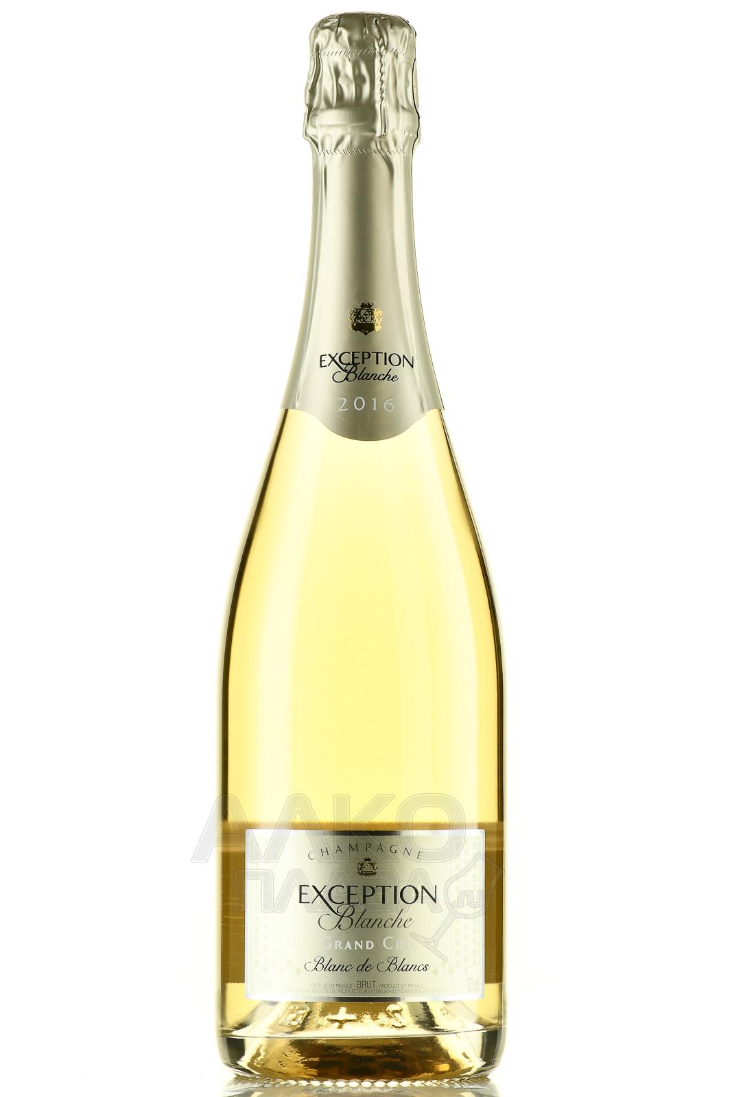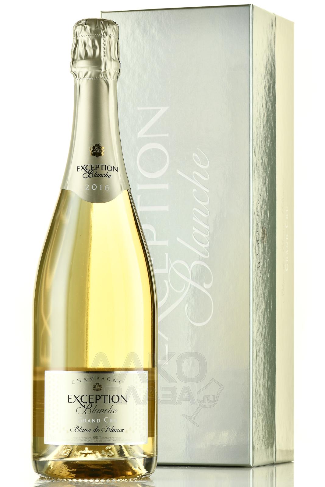 Белое сухое шампанское Mailly Grand Cru Exception Blanche Blanc de Blanc 2016 год 0,75 л — премиальный спиртной напиток контролируемого наименования места происхождения, который был создан во французской Шампани из винограда Шардоне. Урожай этого европейского сорта собрали на ограниченных участках в течение одного года. Прессованию подверглись цельные грозди, затем сусло обработали по методикам алкогольного и яблочно-молочного брожения при шестнадцати градусах Цельсия. Вторичная ферментация протекала в стеклянных бутылках, где брют также выдерживался порядка двух с половиной лет. 12-градусное шампанское отправили на продажу в комплекте с подарочной упаковкой в светлых тонах, поэтому его считают достойным вариантом подарка для коллеги, родственника, начальника.