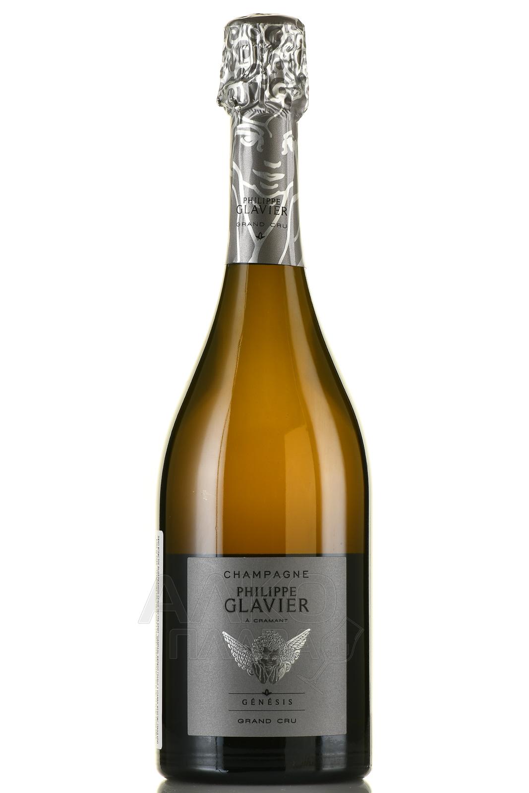 Шампанское белое Philippe Glavier a Cramant Genesis Grand Cru Blanc de Blanc 0,75 л в п/у – элегантный брют, представленный урожаем одного сорта винограда. Напиток изготовлен из белых ягод популярной в Шампани вариации. Плоды созрели в терруаре высшего уровня Гран Крю. Винификация проходила согласно классической технологии шампенуаз. Сначала виноградный сок сбраживался в стальных емкостях. Каждая партия сырья перерабатывалась отдельно. Полученное молодое сухое вино разлили по бутылкам, где оно повторно ферментировалось, насыщаясь углекислым газом и созревая на осадке. Вариация в строгой, но стильной упаковке подойдет на роль солидного презента.