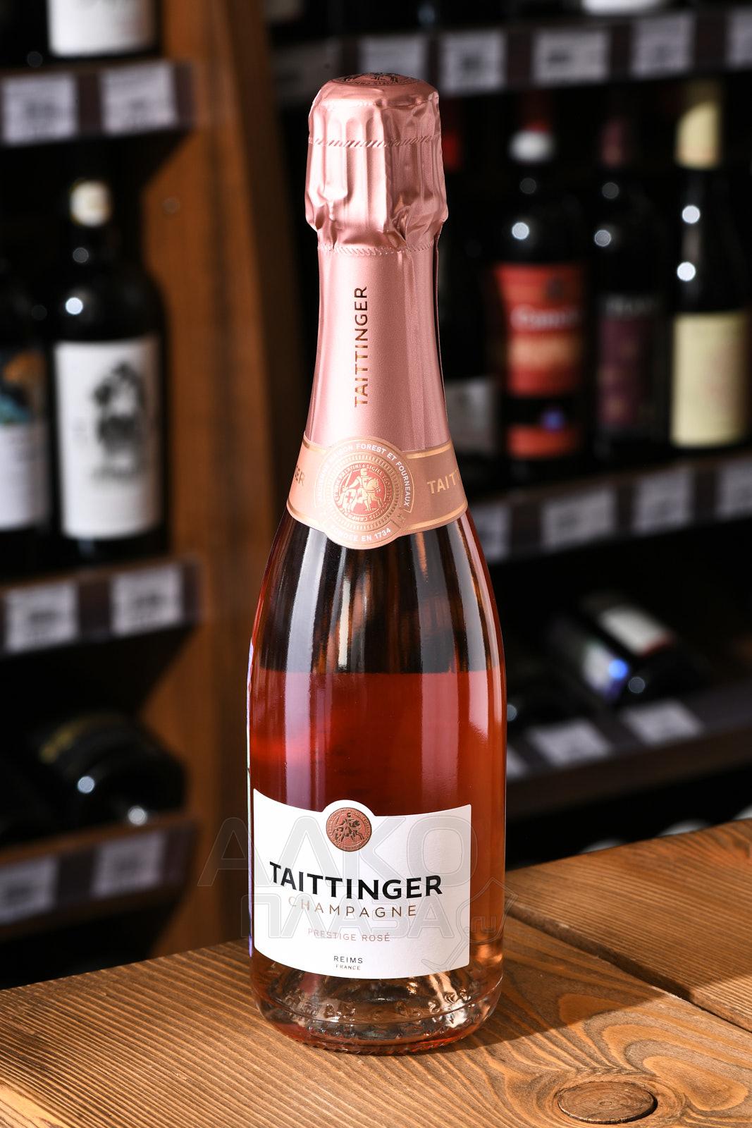 Розовое шампанское Taittenger Prestige Rose Brut 2017 г. 0,375 л – брют, изготовленный на основе купажа традиционных сортов винограда. Винтаж обладает привлекательным цветом благодаря добавлению небольшой доли красного вина. Для создания напитка производитель использовал классическую технологию с повторной ферментацией в бутылке. Спиртное в компактном формате может стать оригинальным подарком.
