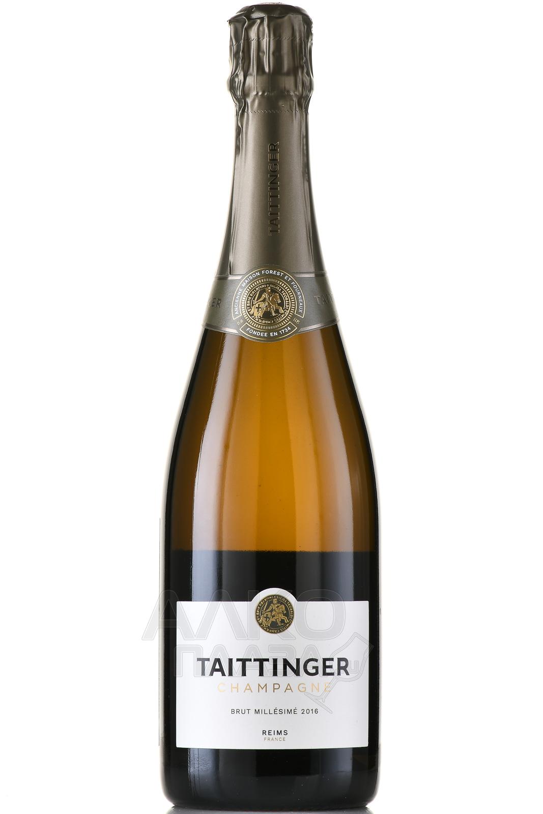 Шампанское Taittinger Brut Millesime 2016 года 0,75 л в п/у — подарочный миллезимный белый брют, созданный из отборного винограда урожая исключительно удачного года. Сбор ягод осуществлялся вручную с лучших виноградников Гран и Премьер Крю в регионах Кот-де-Блан и Монтань-де-Реймс. Для производства использовали только сок первого мягкого отжима. Брожение протекало в емкостях из нержавеющей стали при контролируемой температуре. Затем шампанское выдерживали не менее пяти лет в бутылке в прохладных погребах дома Тэтэнже, благодаря чему оно приобрело глубокий и изысканный вкус.