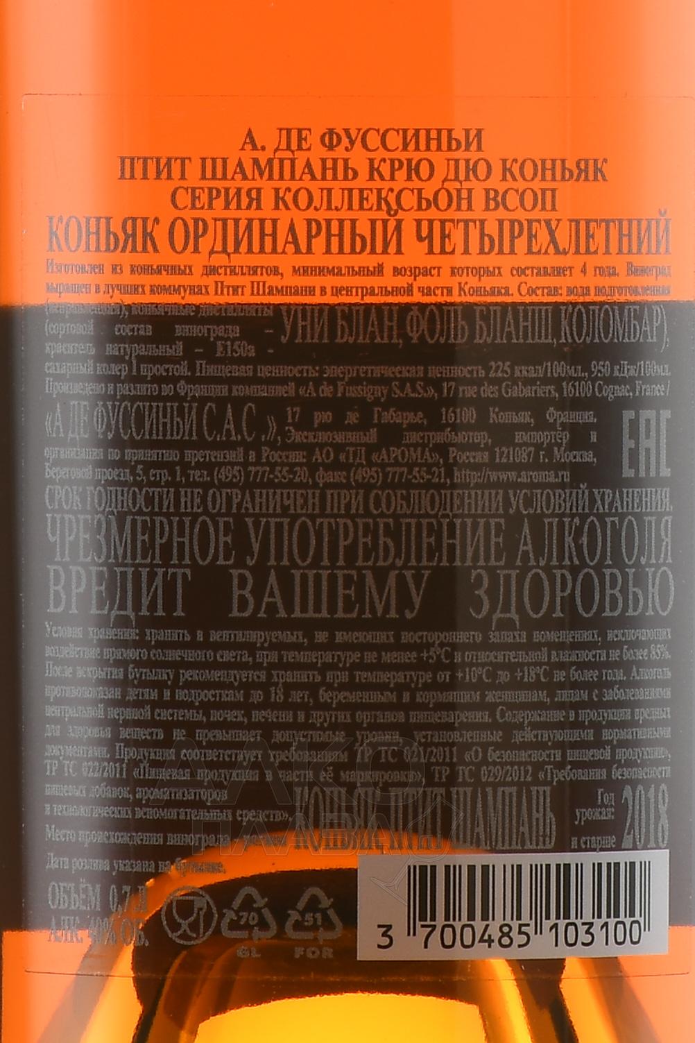 Коньяк «A.de Fussigny Collection Petite Champagne Cognac» – это восхитительный коньяк из региона Petite Champagne.
