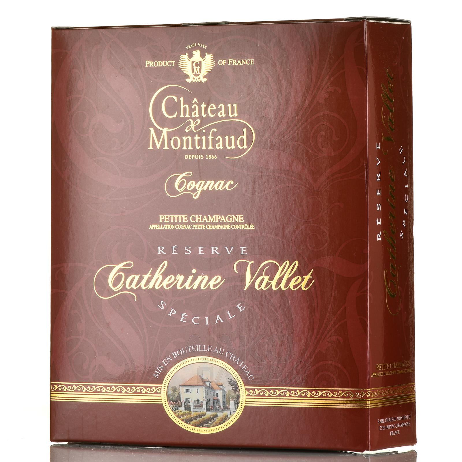 Коньяк Chateau de Montifaud Reserve Speciale Catherine Vallet предлагается производителем в округлых красивых графинах с золотистыми пробками, которые идут в паре с сувенирными боксами из плотного картона. Купаж создан на основе дистиллятов коренного белого винограда региона Коньяк, собранного в 2012 и 2013 годах. Изготовление 40-градусного напитка прошло на производственных мощностях старинного семейного предприятия путем перегонки в классических колоннах и вызревания в лимузенских дубовых бочонках сроком от 8 лет.