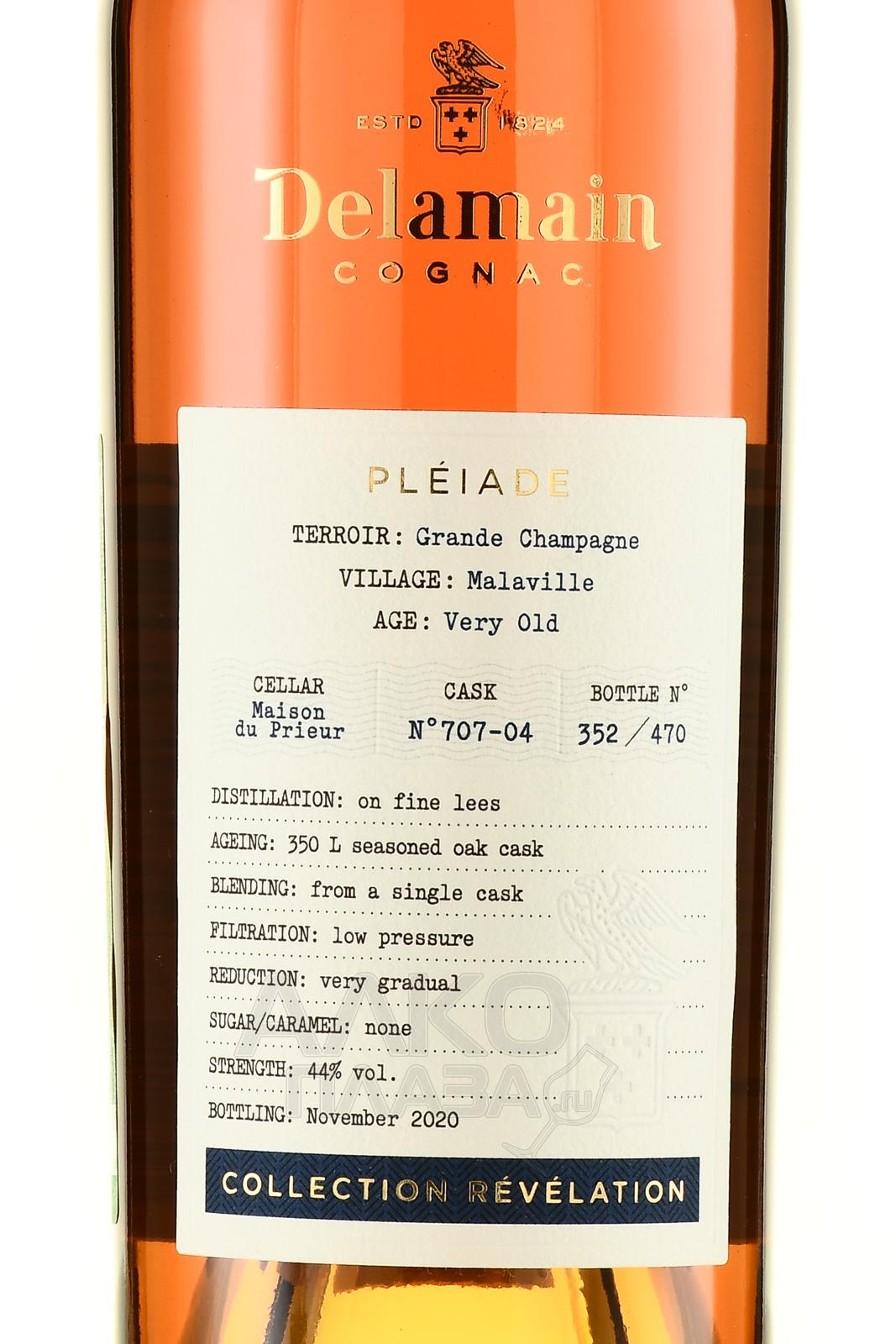 Коньяк Delamain Pleiade Collection Revelation Malaville 0,7 л в п/у выпущен ограниченным тиражом в рамках серии, которая объединяет лучшие экземпляры старинного бренда – миллезимы, с одного виноградника или из одной бочки. Данная вариации соответствует всем трем условиям. Урожаи для ее создания собрали в коммуне Малавиль. Молодые дистилляты получили тщательной перегонкой на тонком осадке, что добавило букету будущего напитка полноты и элегантности. Выдержка проходила в погребе La Maison du Prieur в единственной старой 350-литровой бочке № 707-04, испытанная временем древесина которой снизила влияние танинов, позволив терруару и сортовому потенциалу сырья проявить себя в полной мере. Перед бутилированием крепость бленда медленно понизили, а затем разлили без добавления подсластителей и красителей в начале ноября 2020 г. в количестве 470 бутылок.